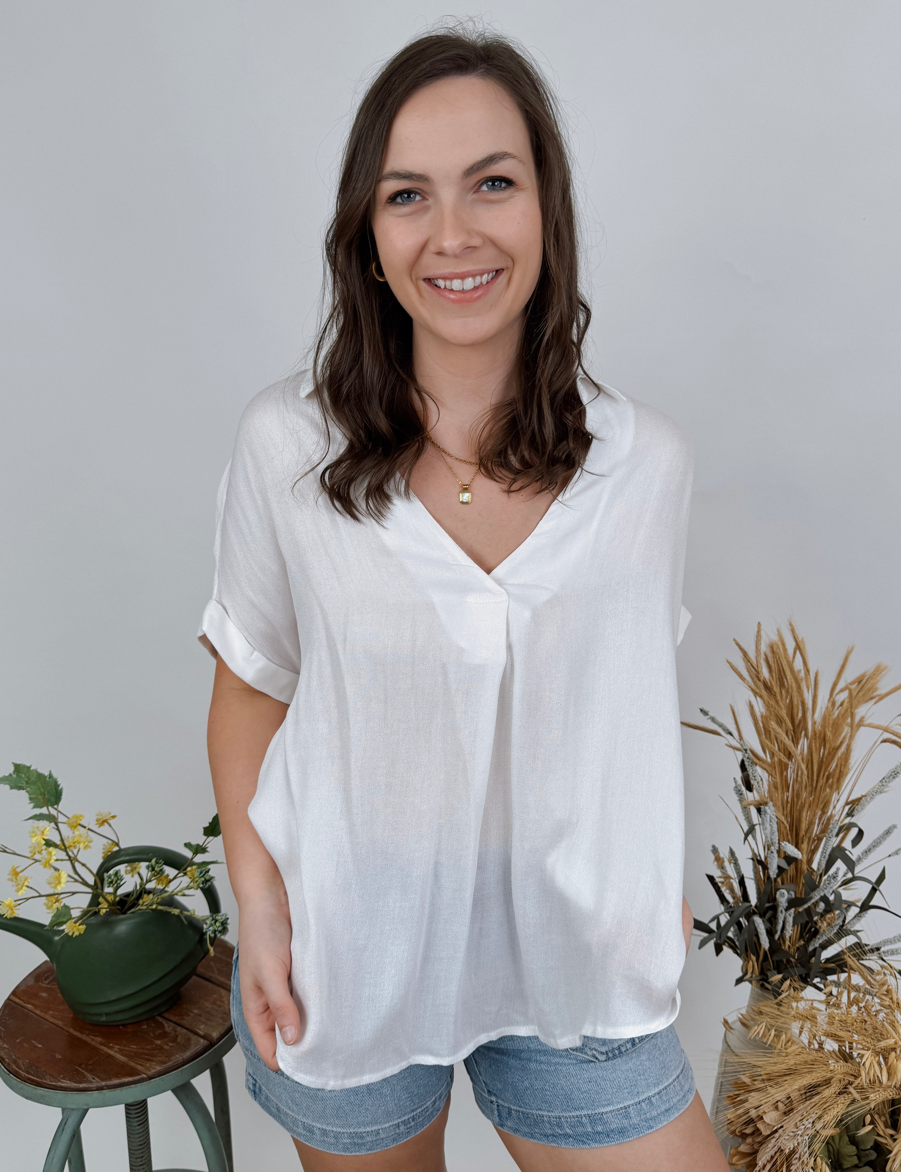 Just Winging It V-Neck Blouse
