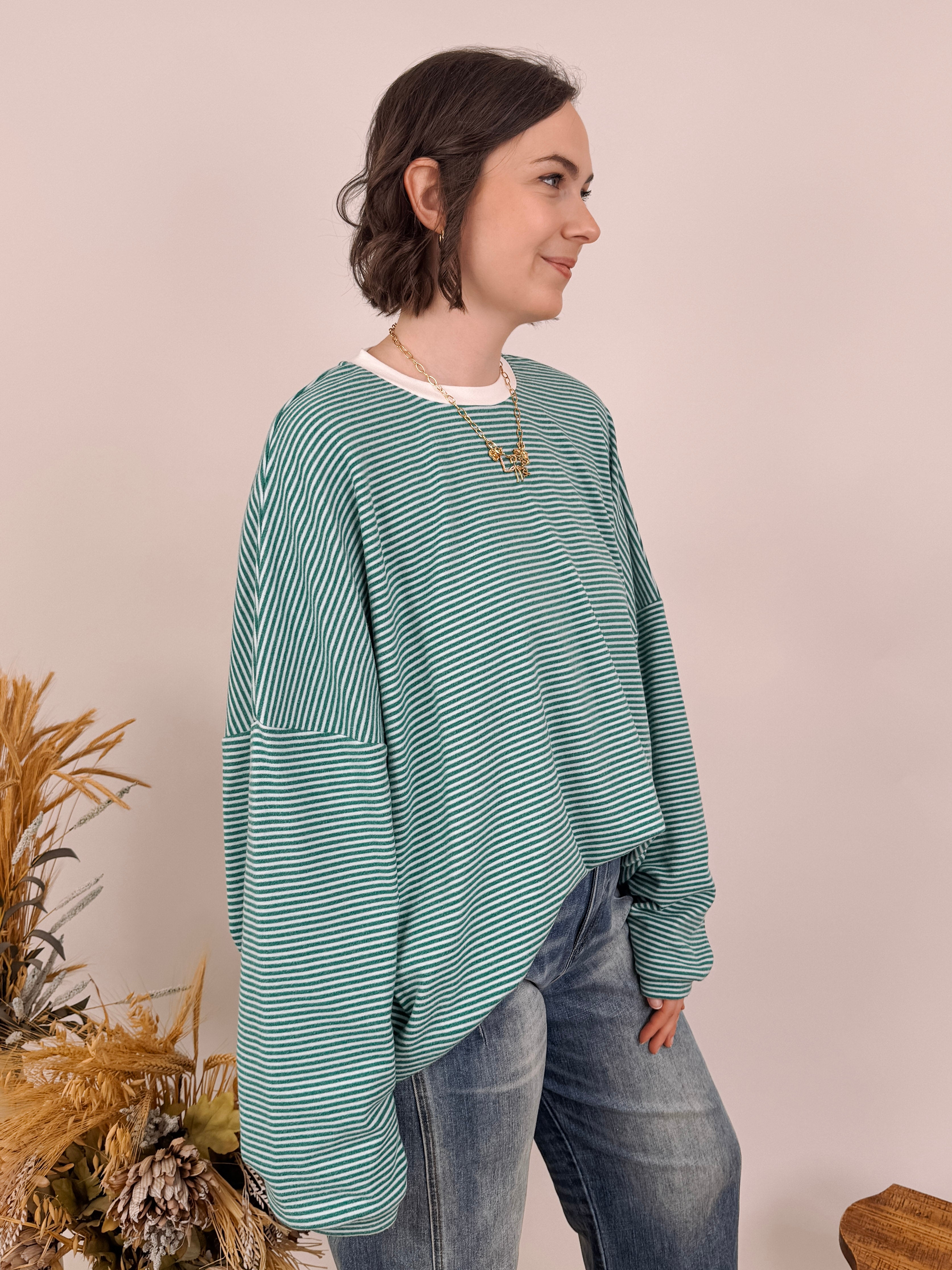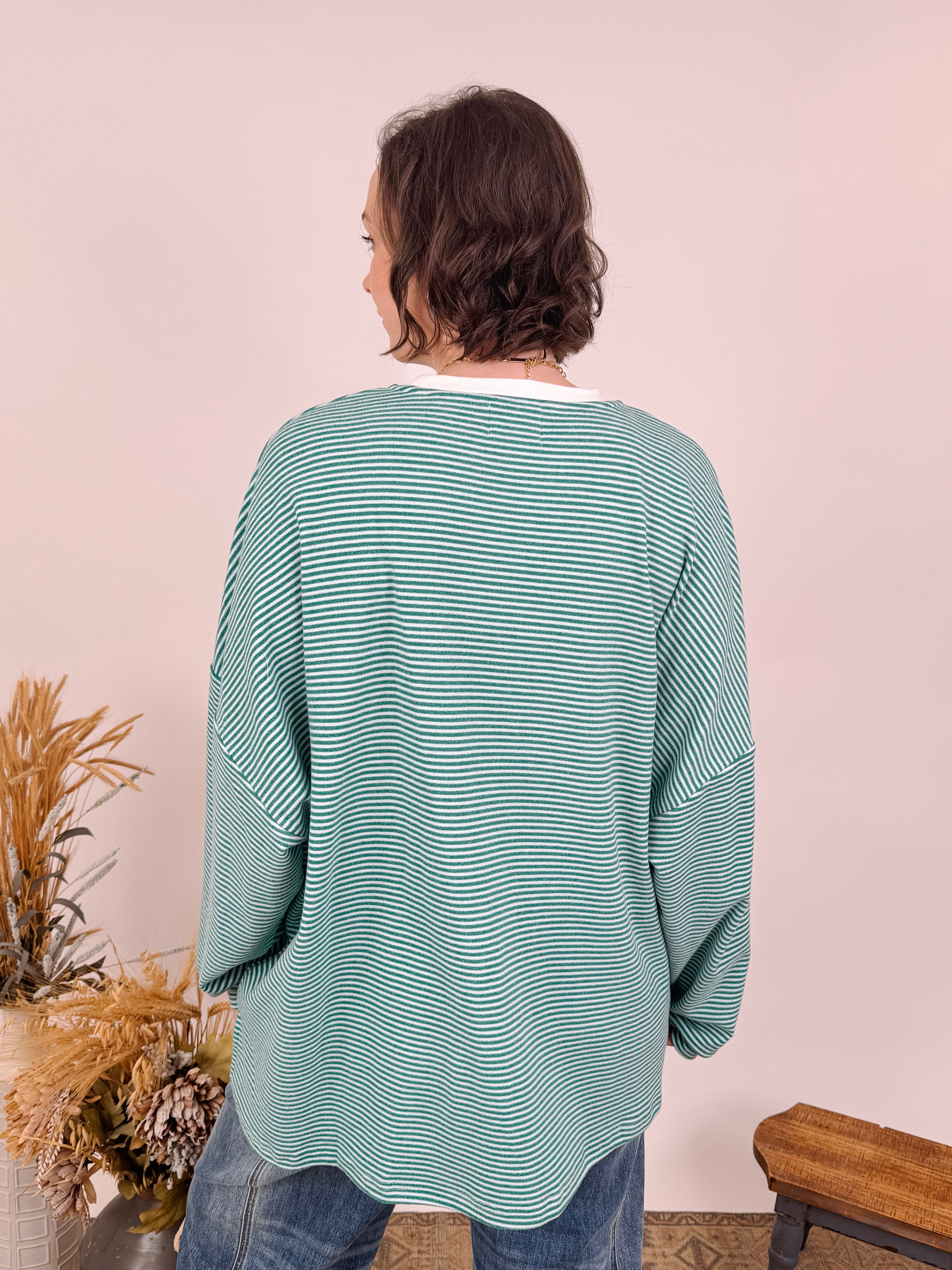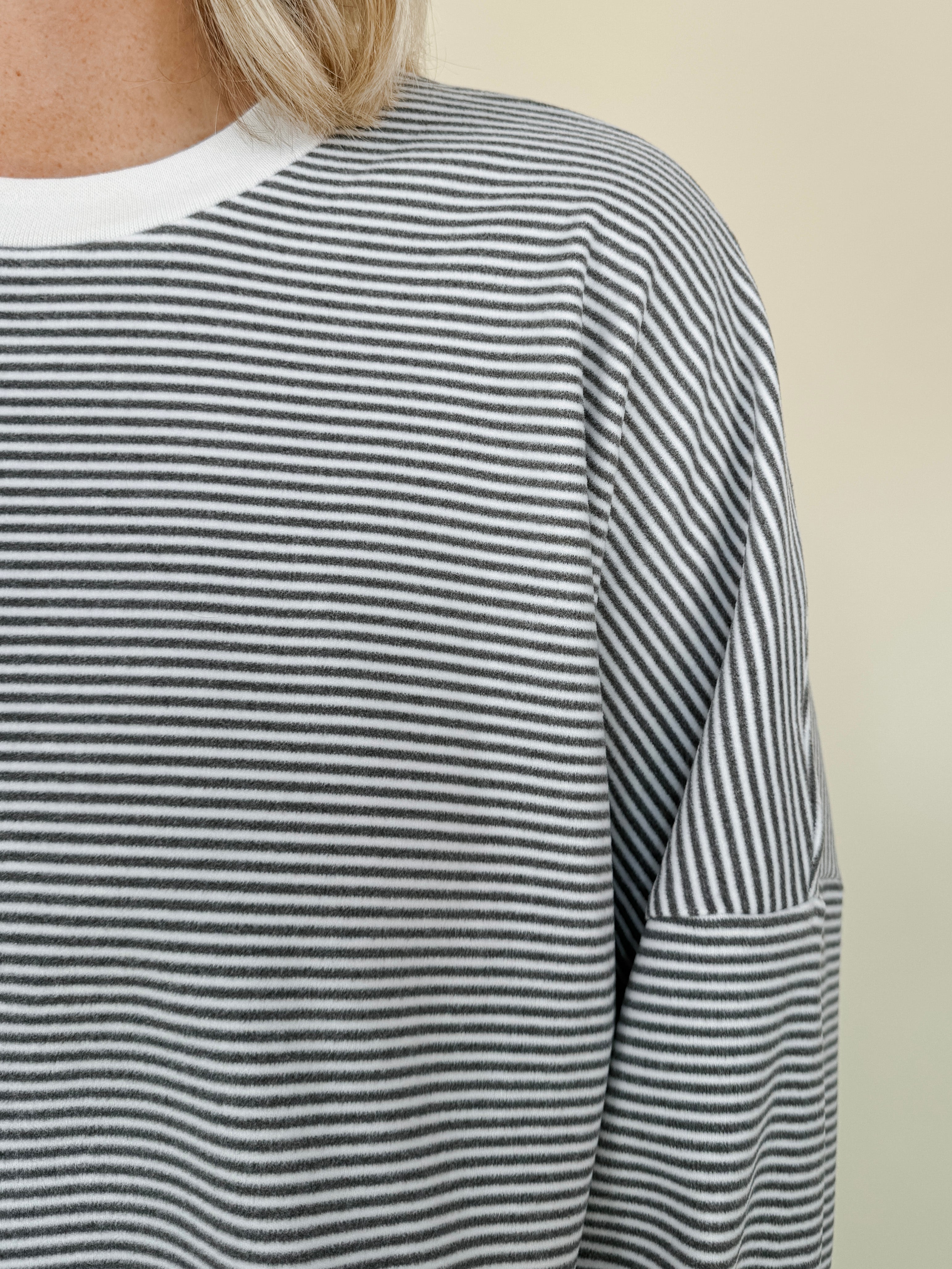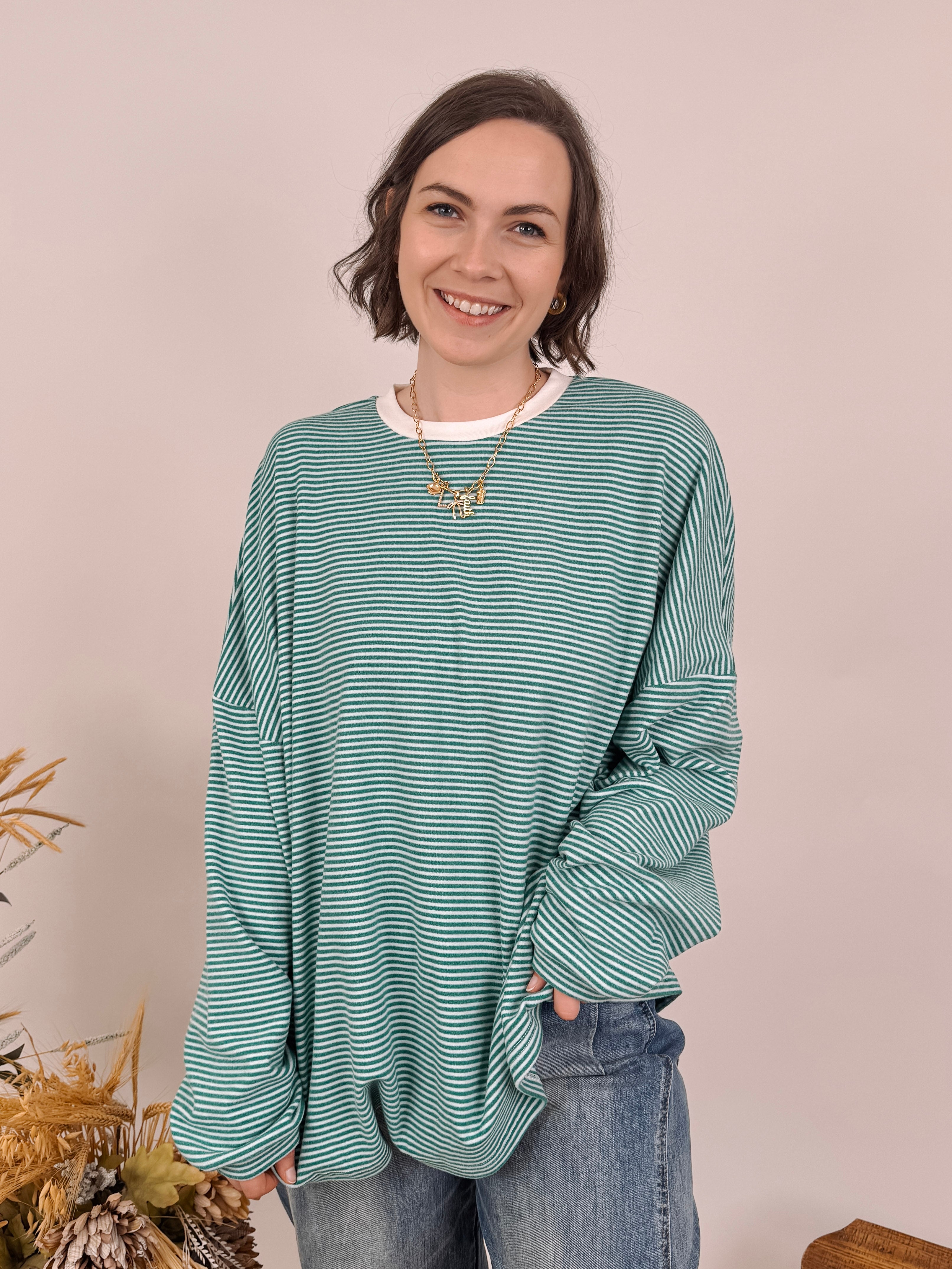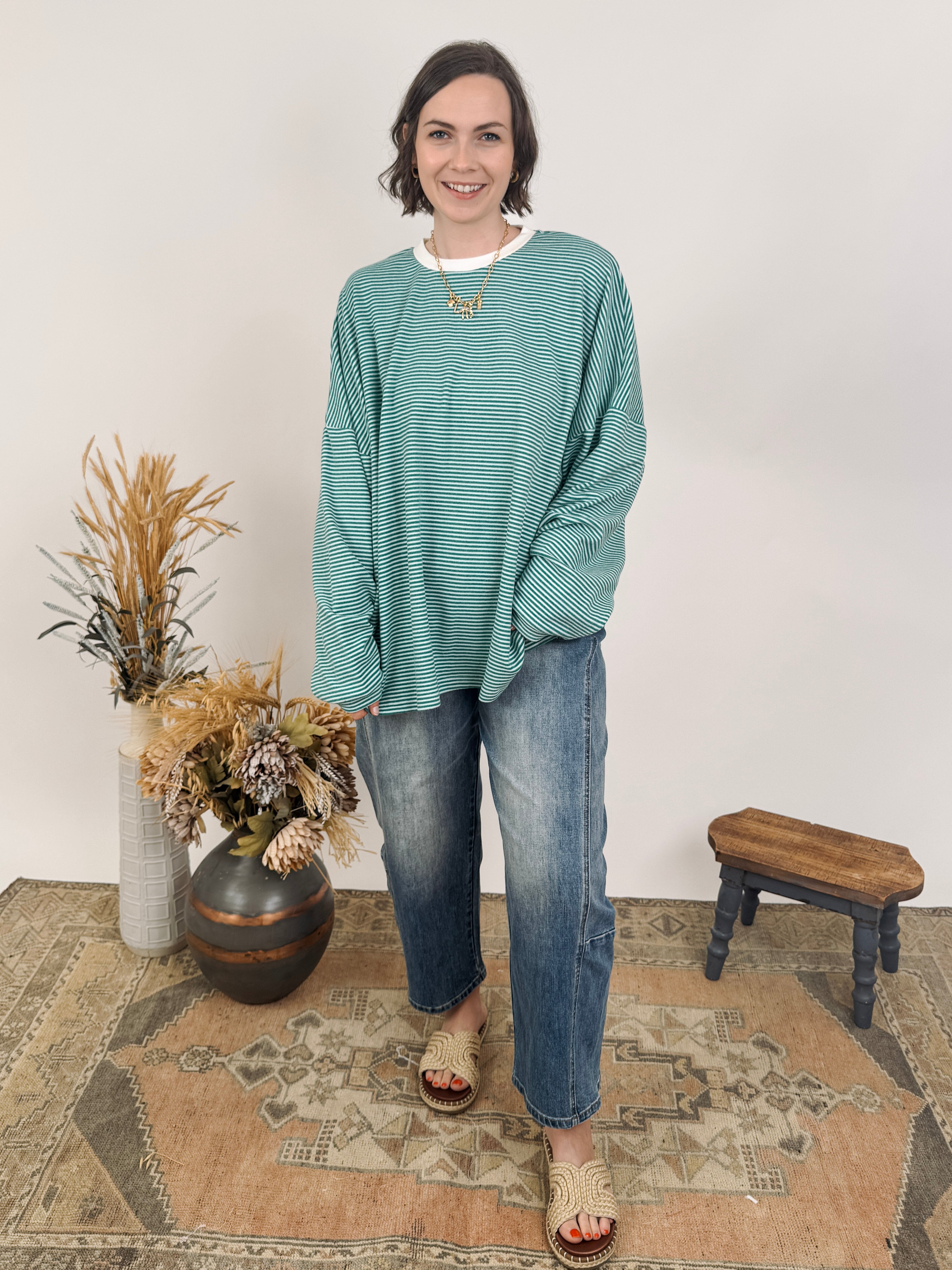 If you're in need of a blanket in shirt form this is the one! The Adelee Top is so good you'll want it in both colors. This oversized top makes it the perfect piece to pair with your favorite denim or wear with your go to leggings for a relaxed kinda look.