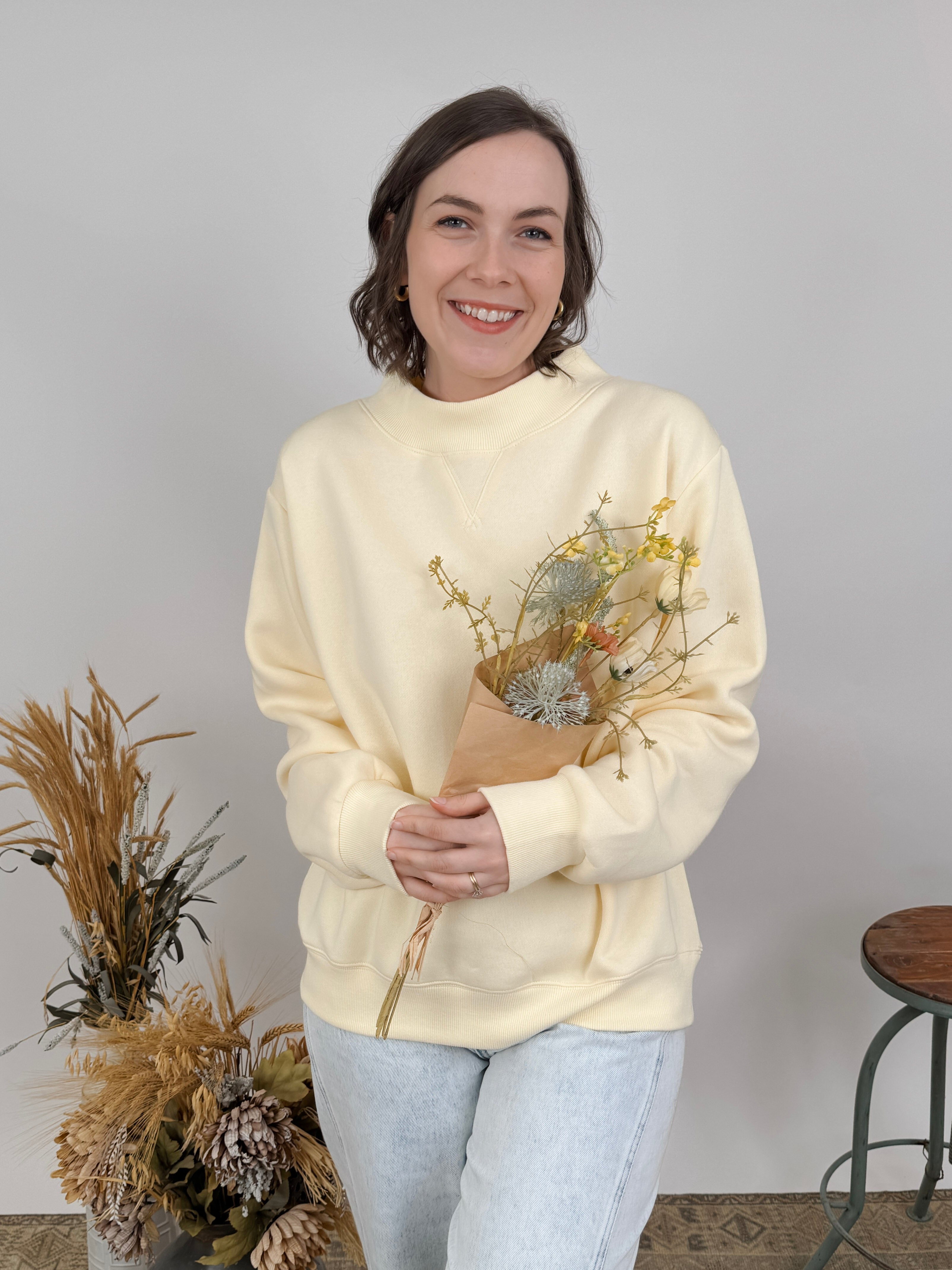 This sweatshirt is by far a staff fave here! The Adalyn has a high neckline, super soft fabric, and fun color options. We love the comfy fit of this sweatshirt and just know it'll be a staple for you this Fall Season.