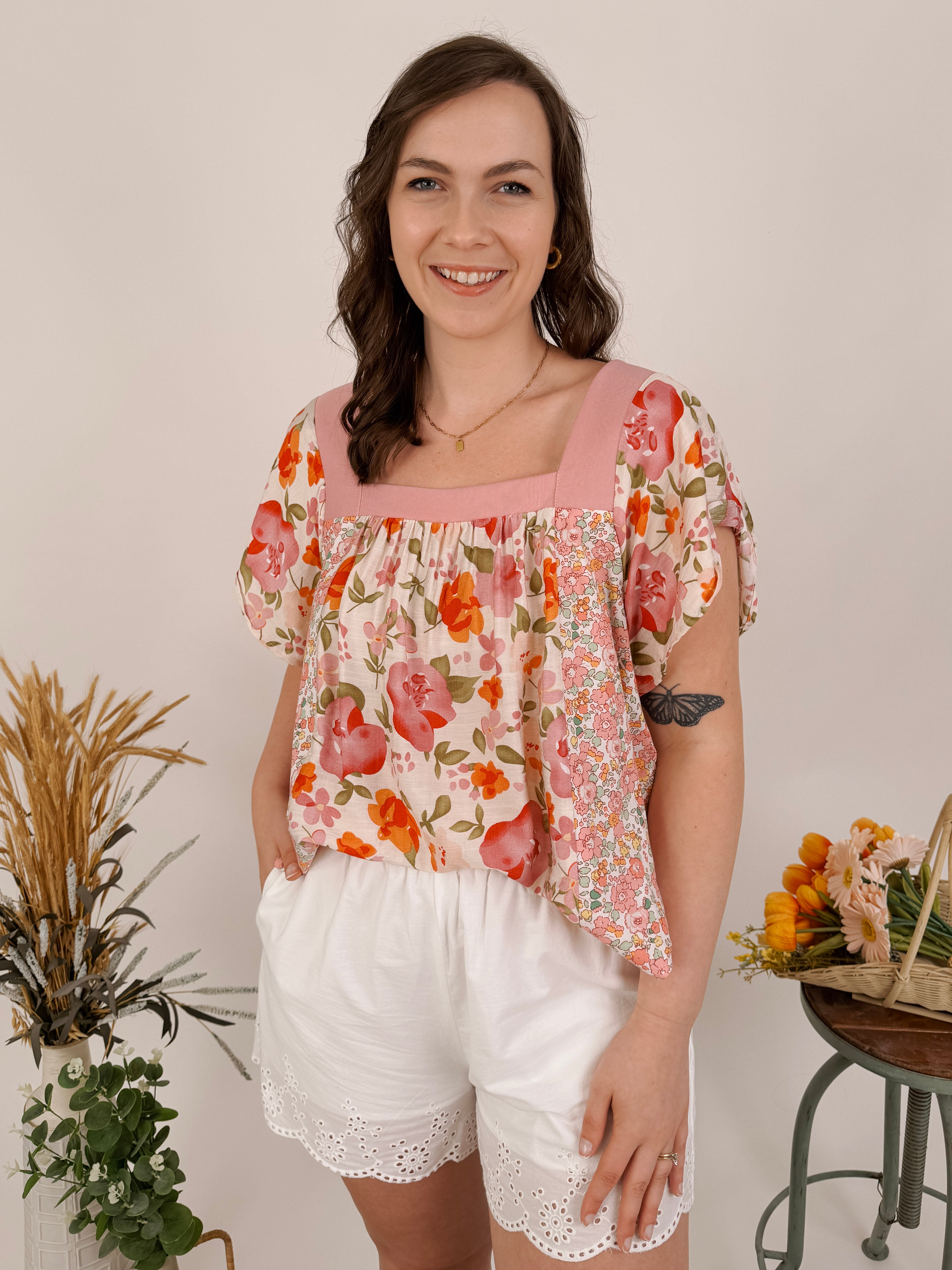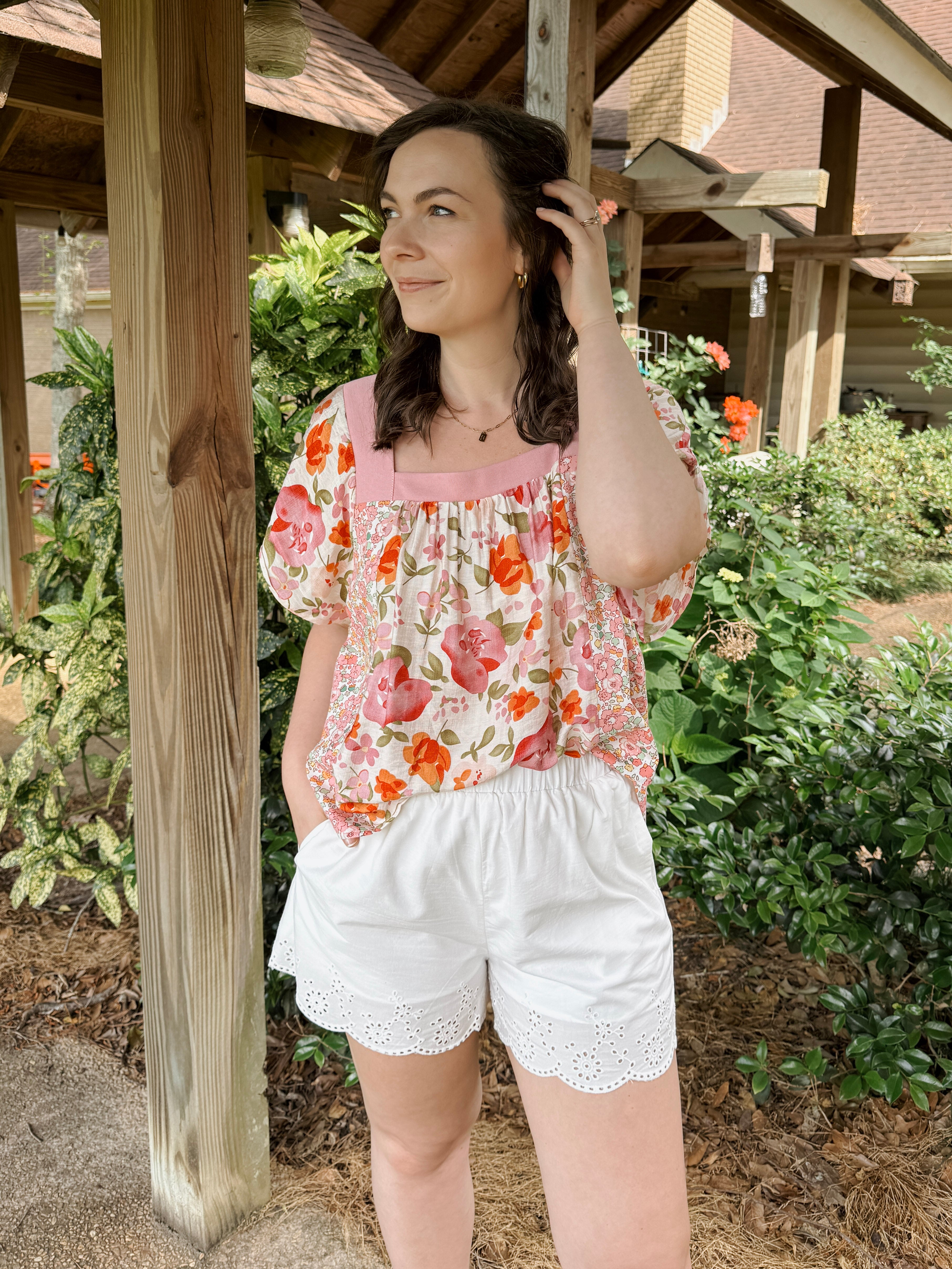 Not only does this top have the most lovely floral print, it also has a great flattering cut. The Anne Marie Blouse has a soft material, square neckline, and rounded hem. We've paired it with the In Soft Focus Shorts for a fun Summer Look. This top would look great with a pair of white skinny jeans for a Church or Dinner look! Grab yours before it's gone!