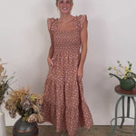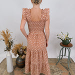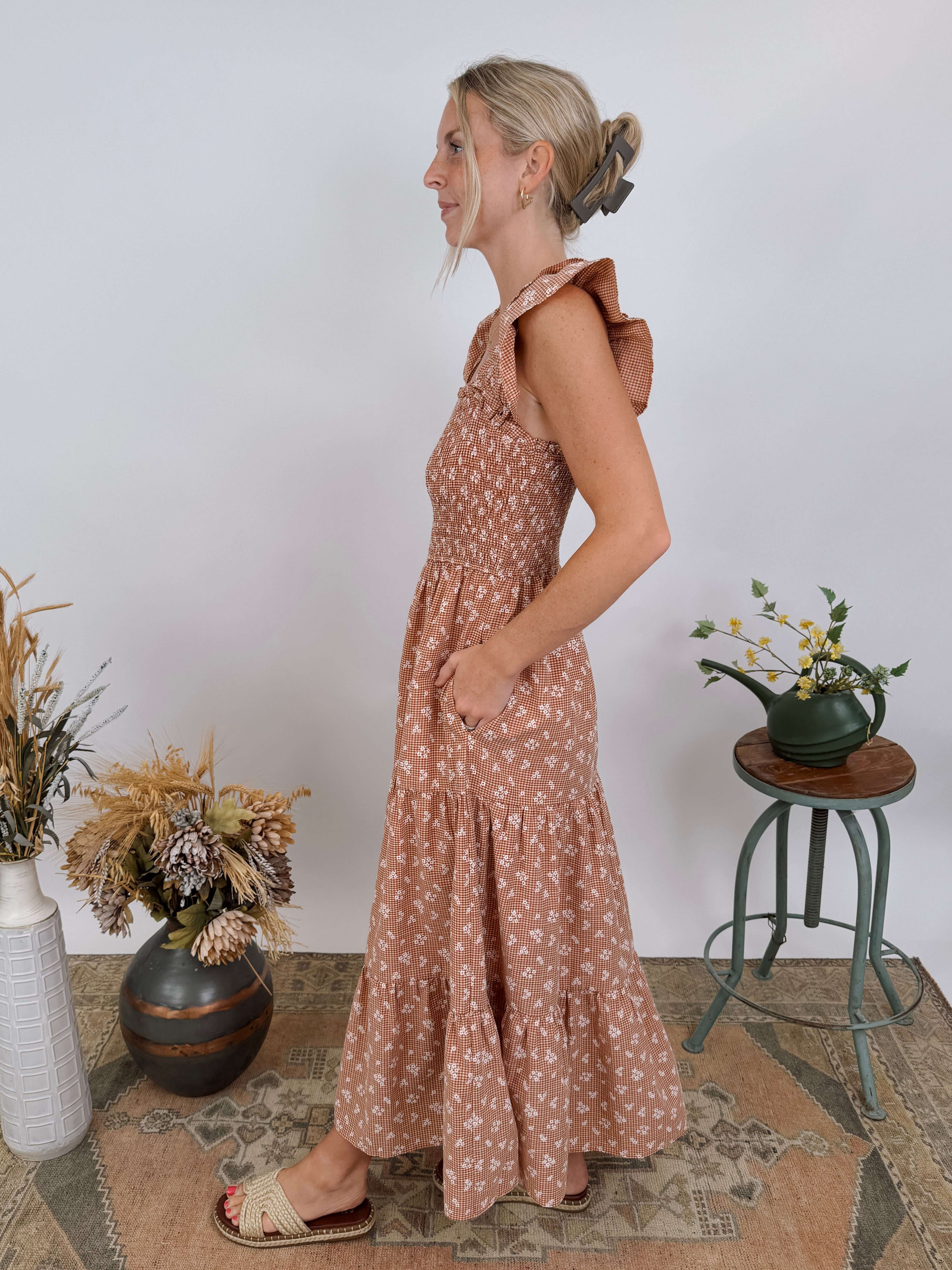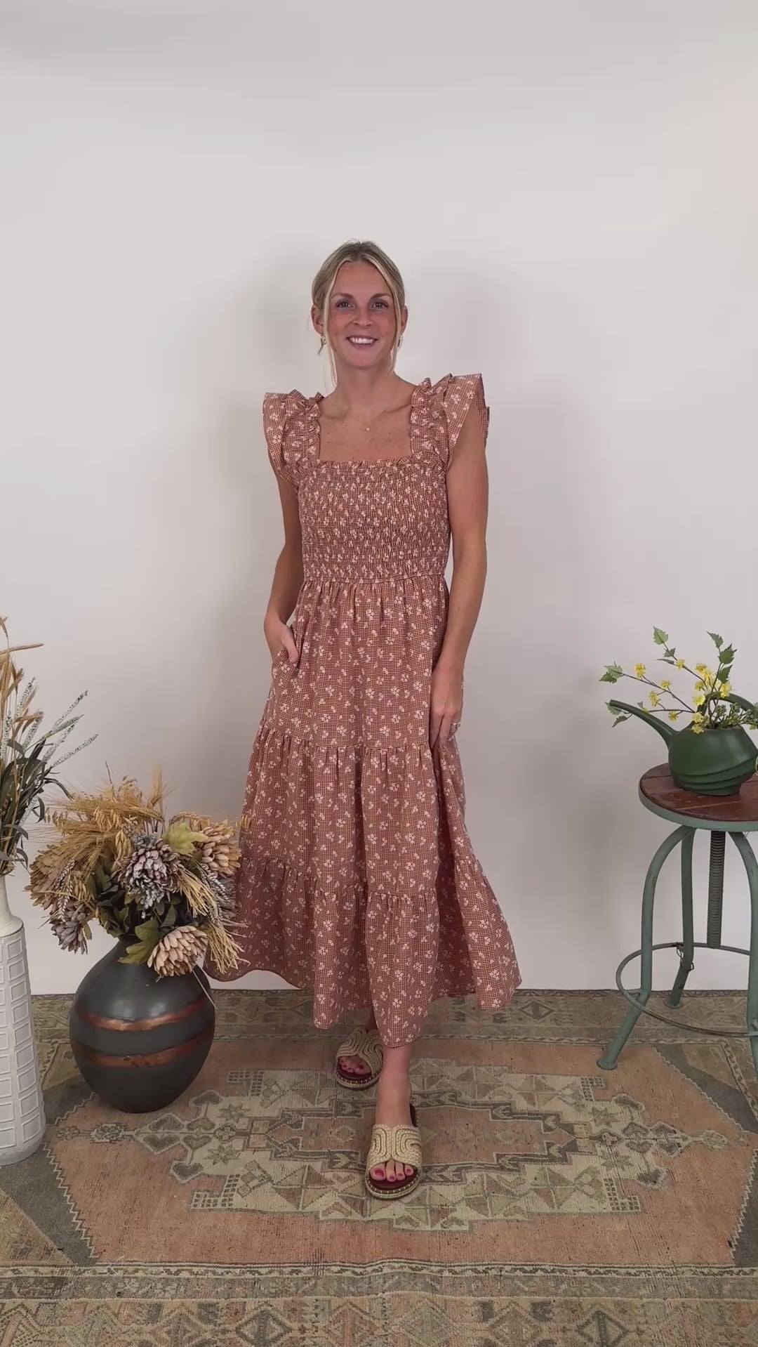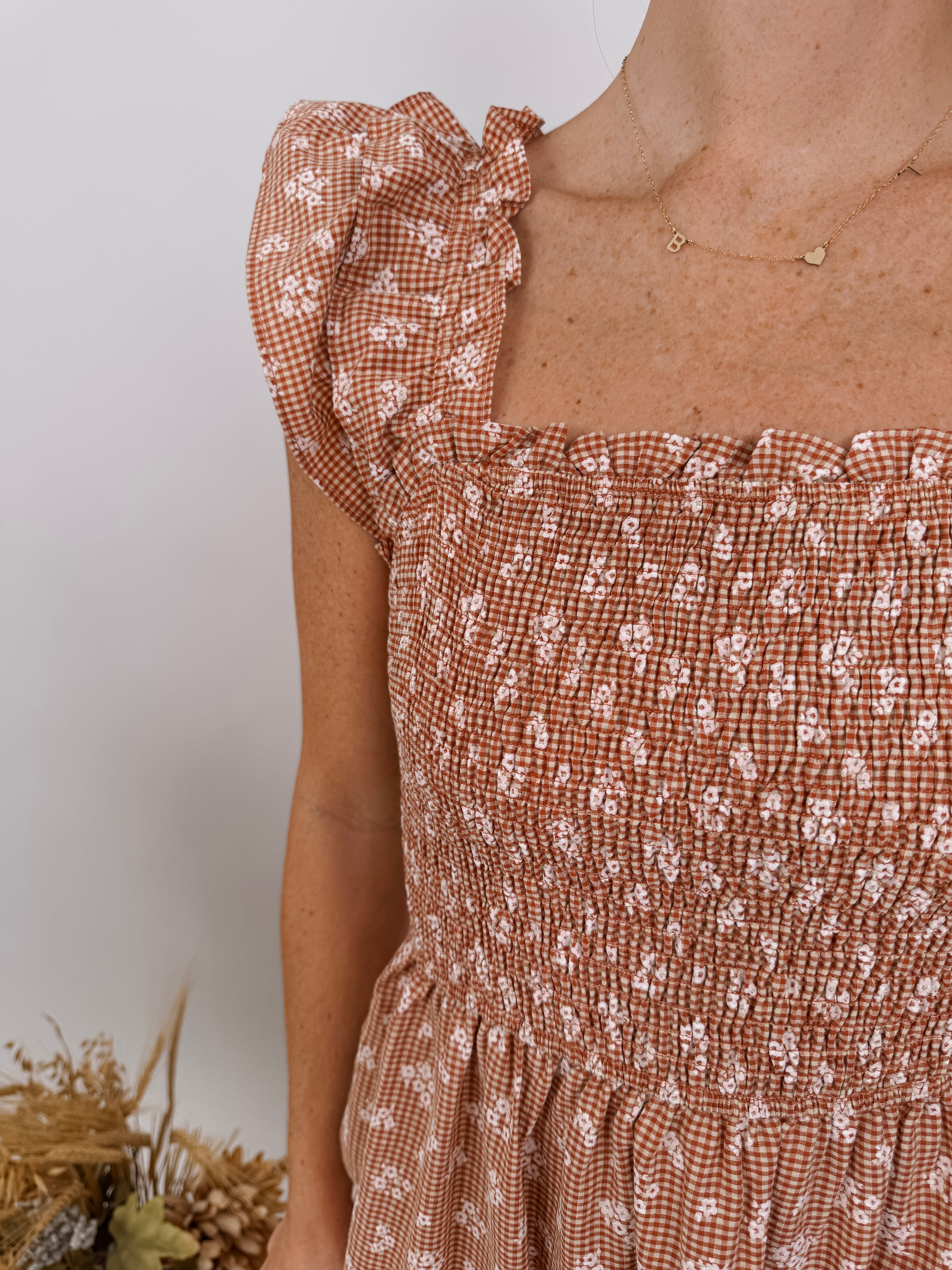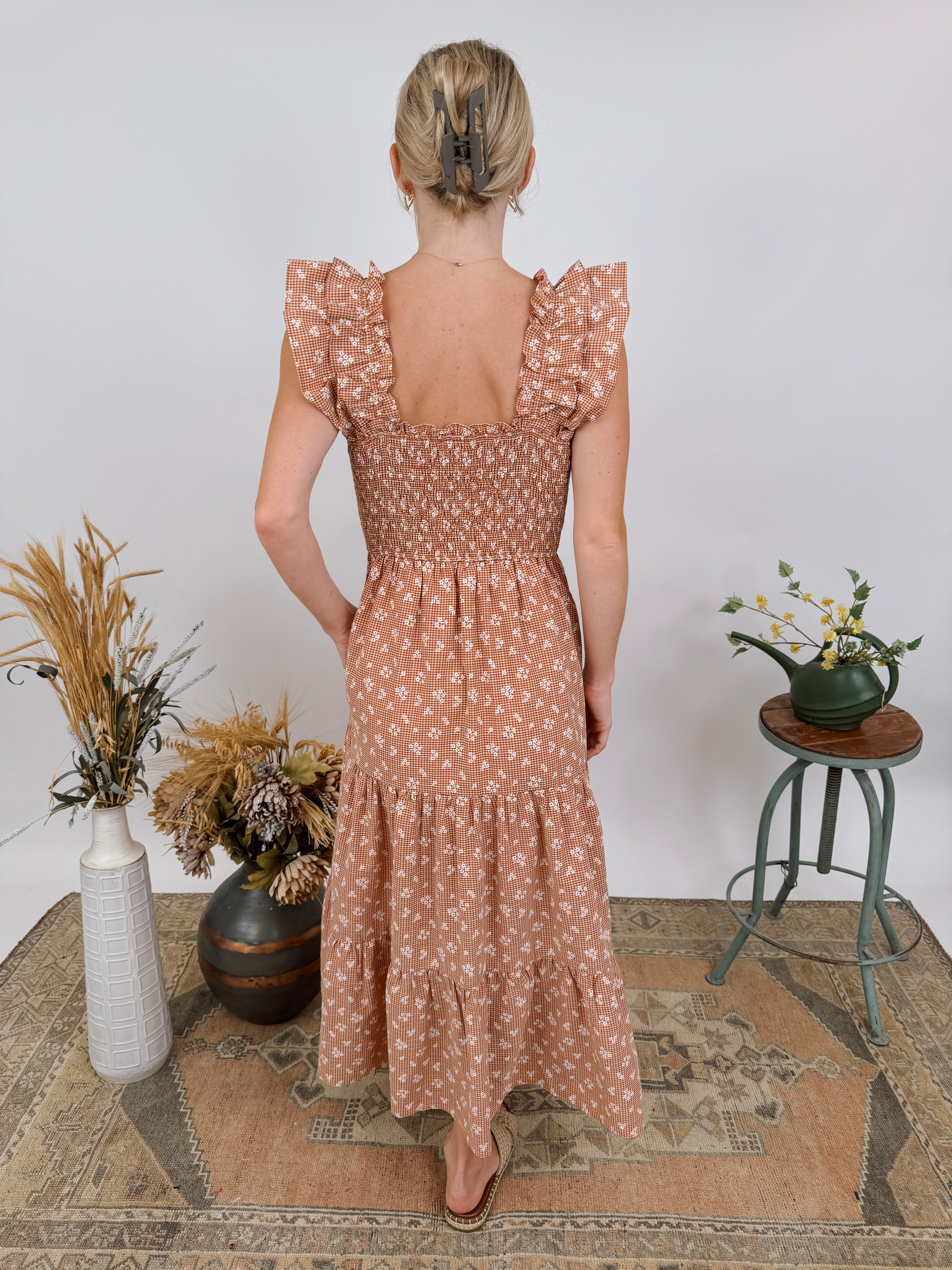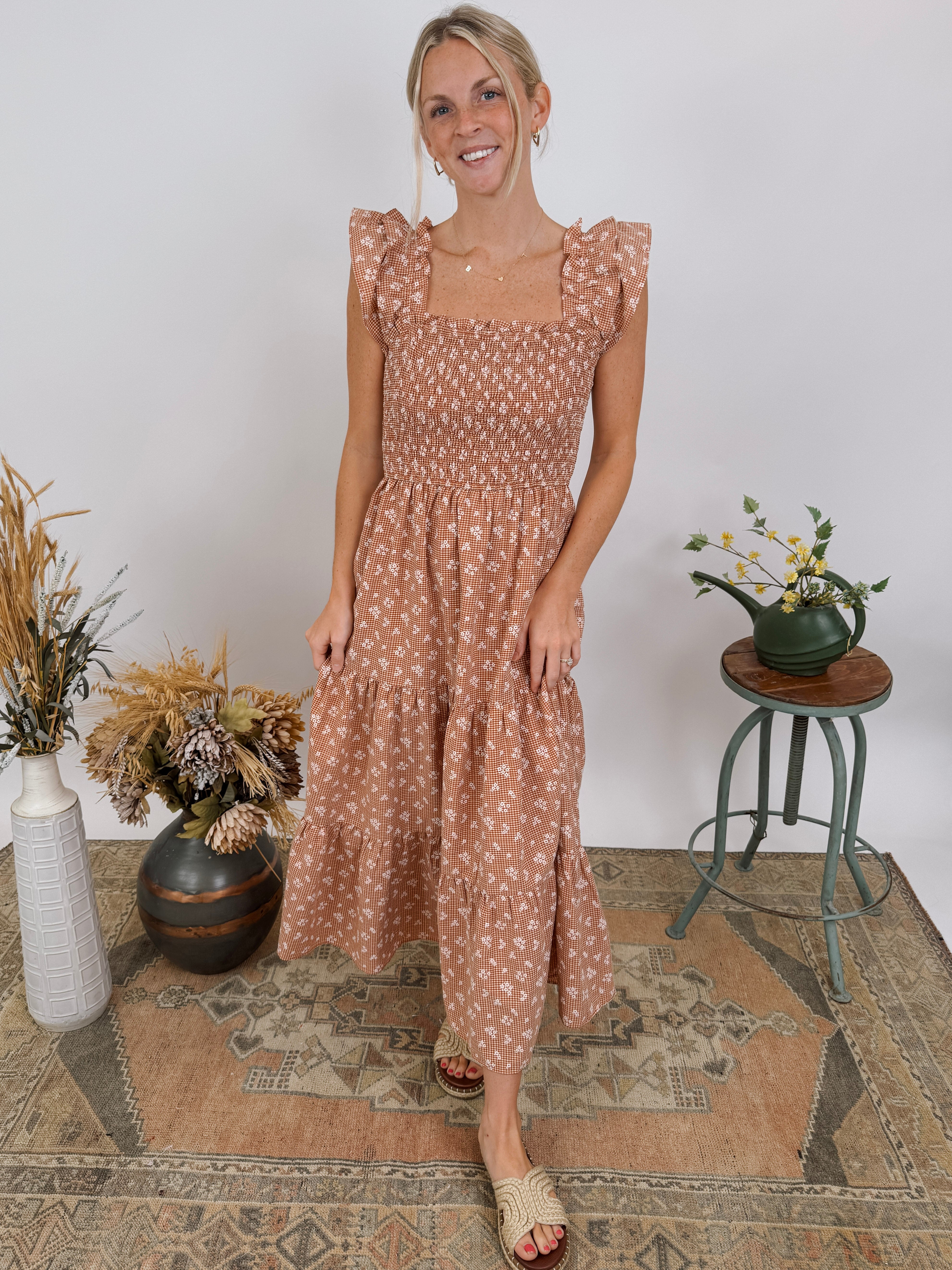 This is one of our faves By The Way! This Midi Dress has a lovely floral checkered print, smocking at the bust, and precious ruffled sleeves. This is the perfect go-to dress for Fall!