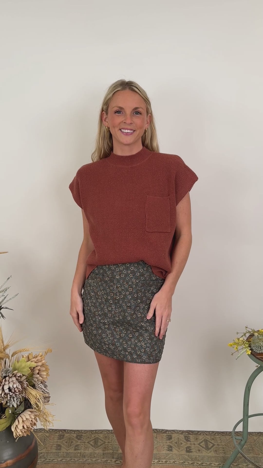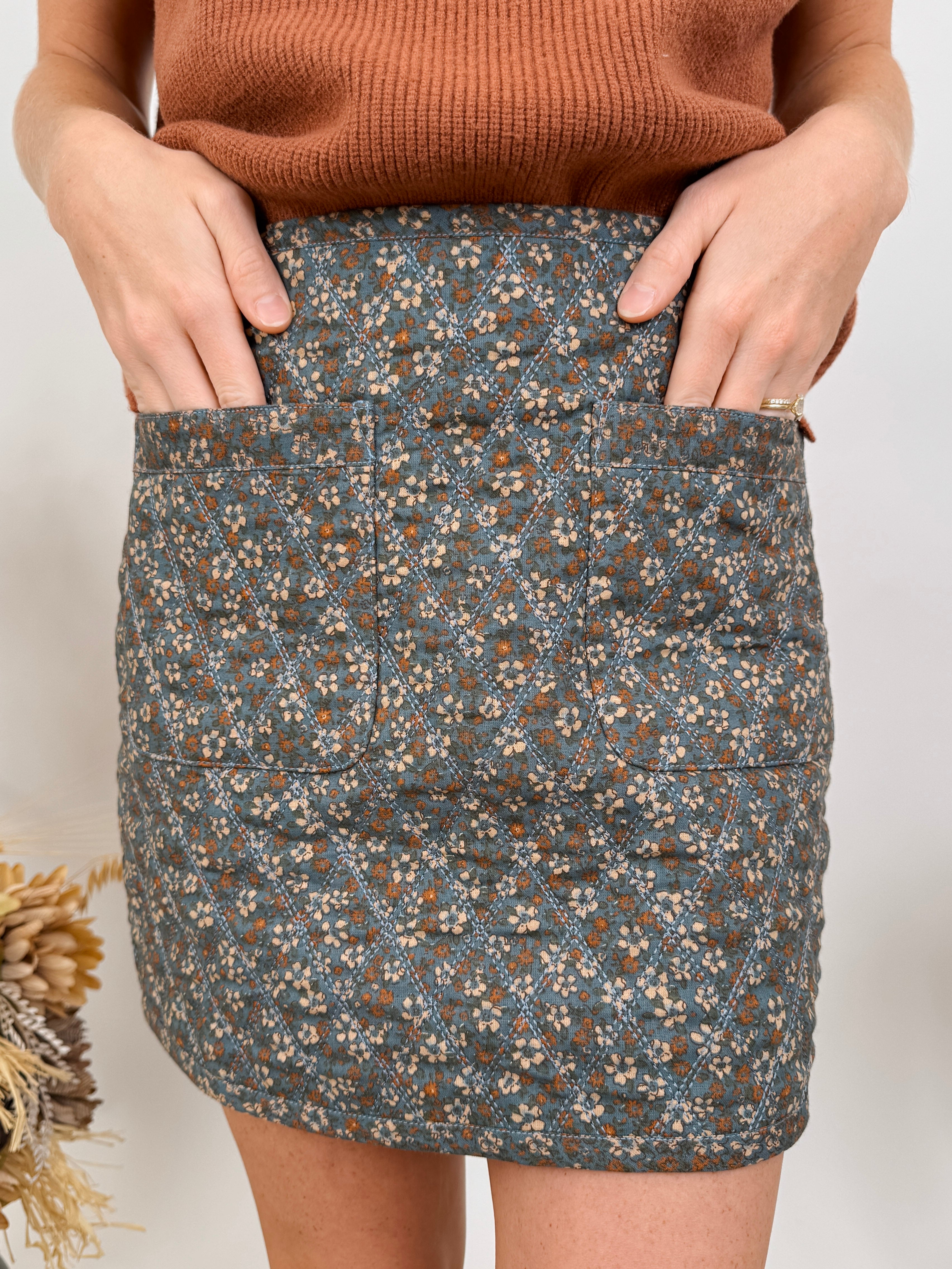 The City Strolling Skirt is a must have! It has the most precious floral print, front pockets for added detail, and a quilted look. We've styled it with the Kensley Mock Neck Top for the most precious Fall outfit!