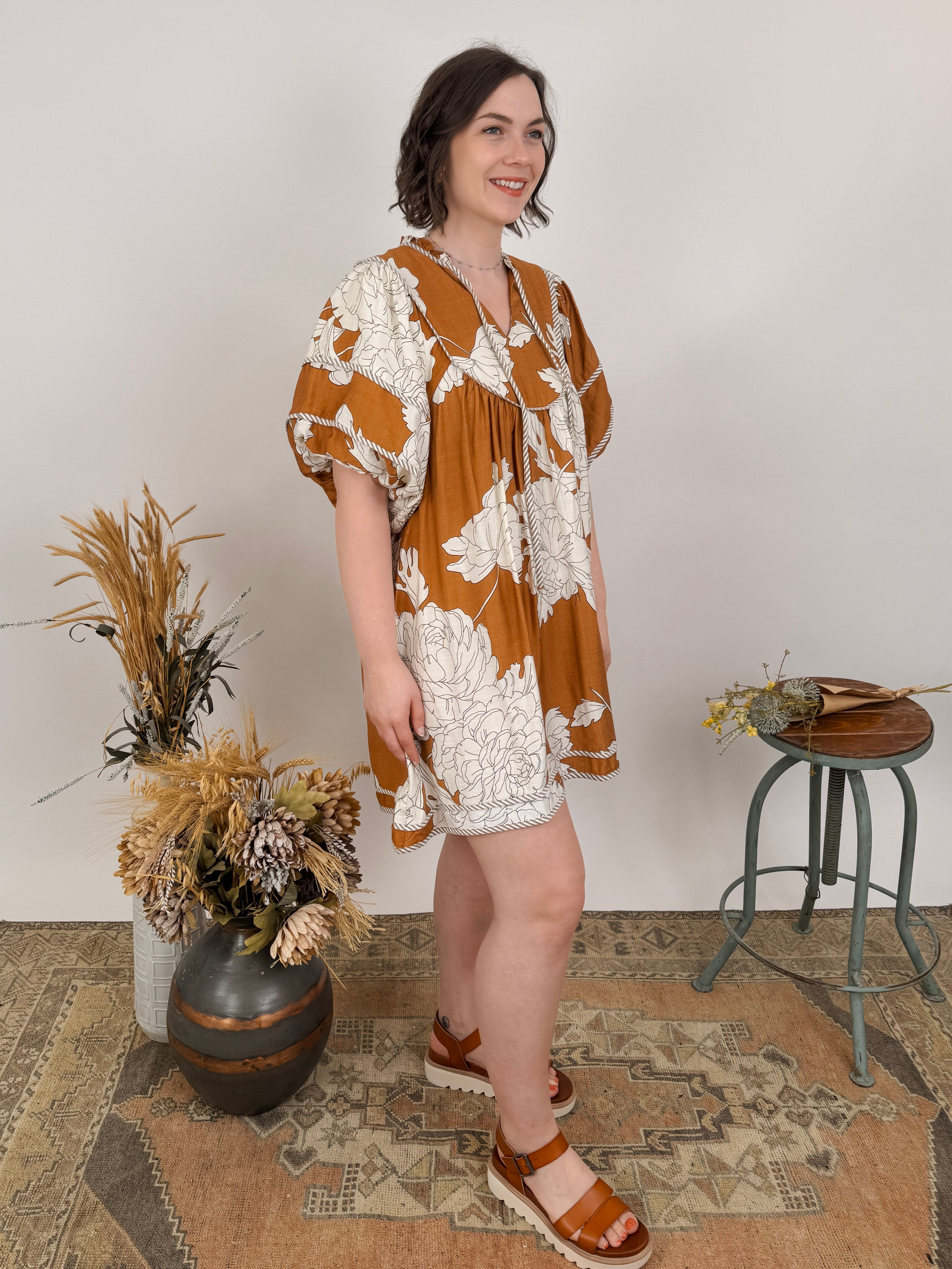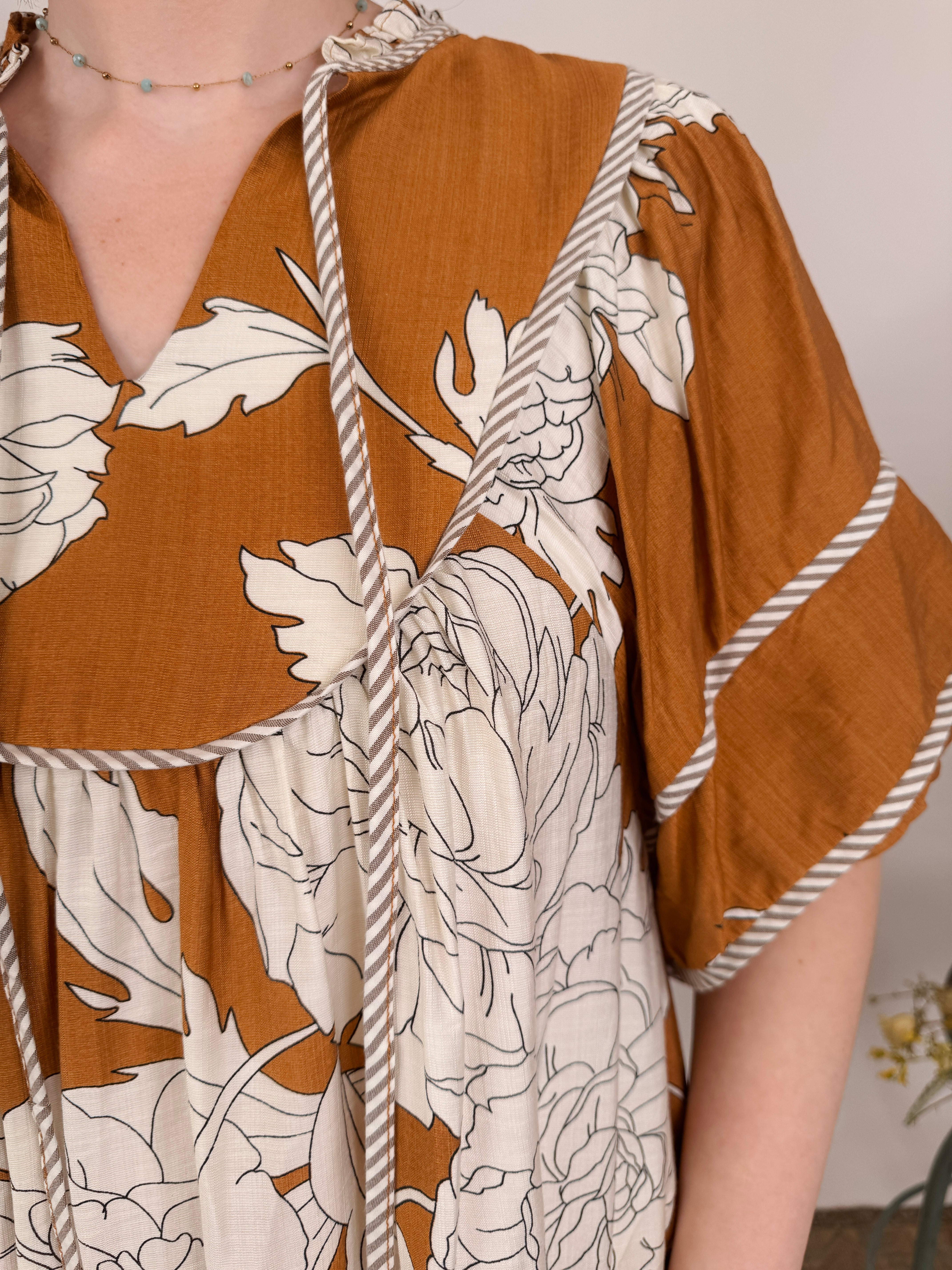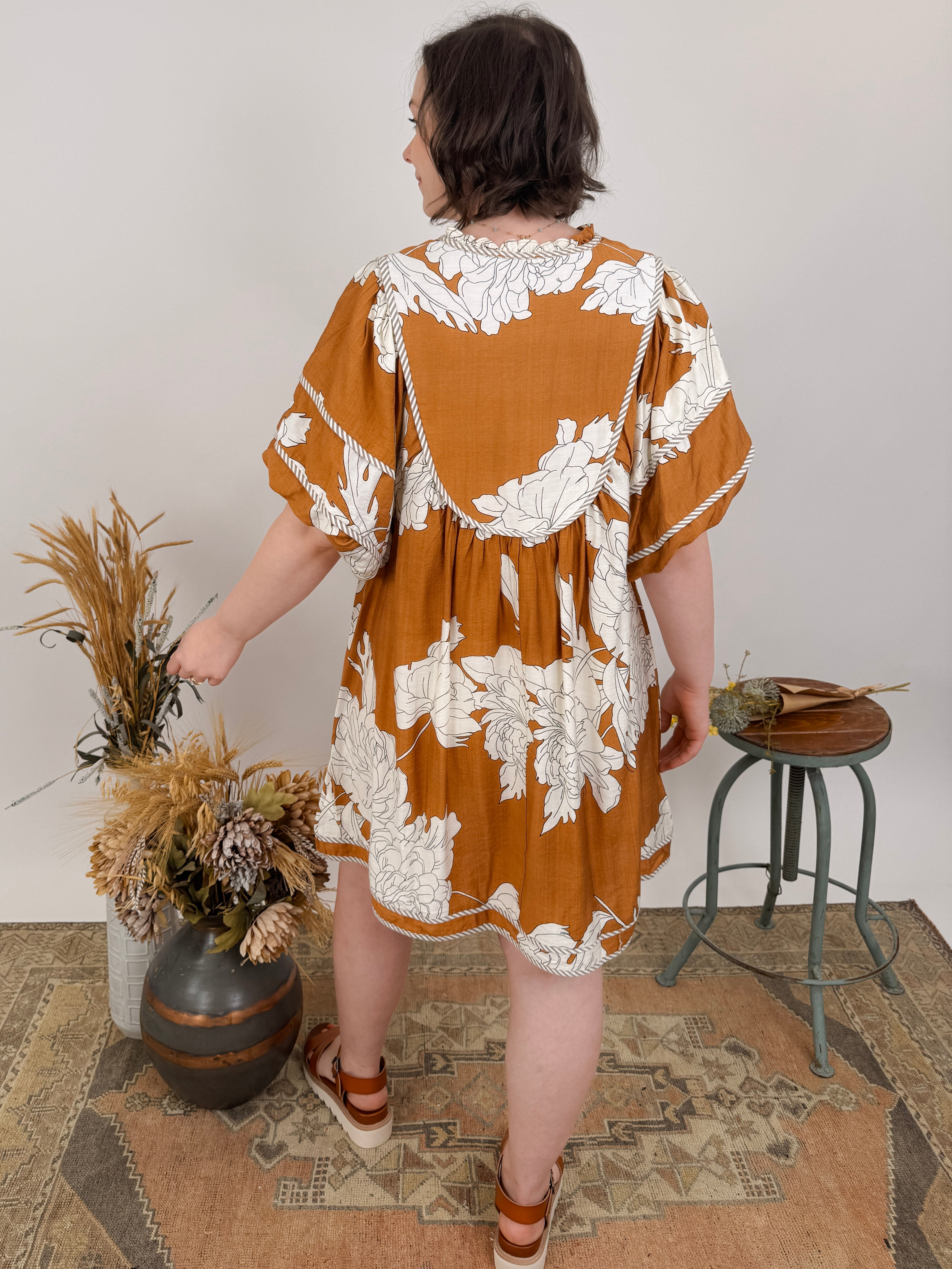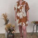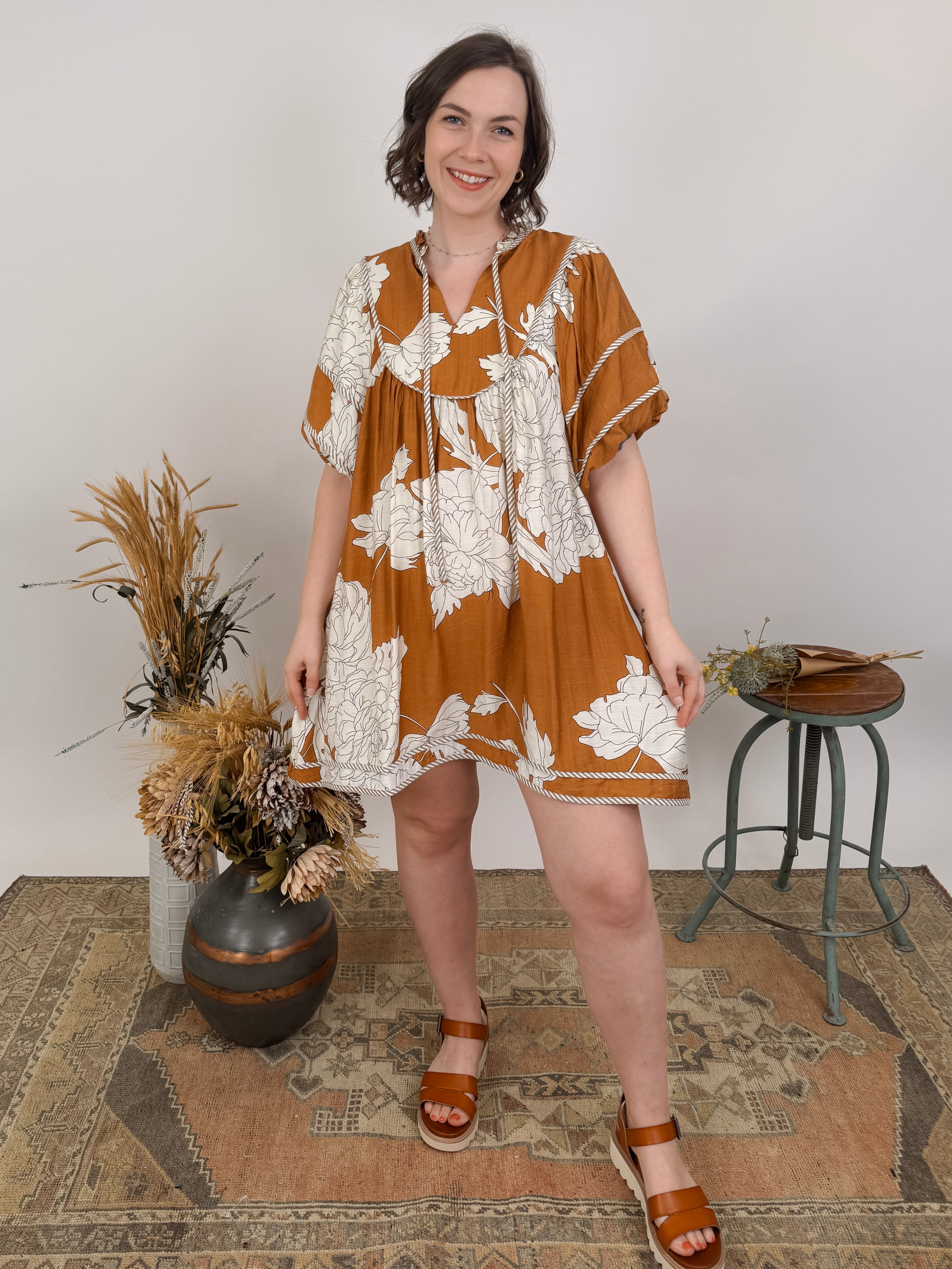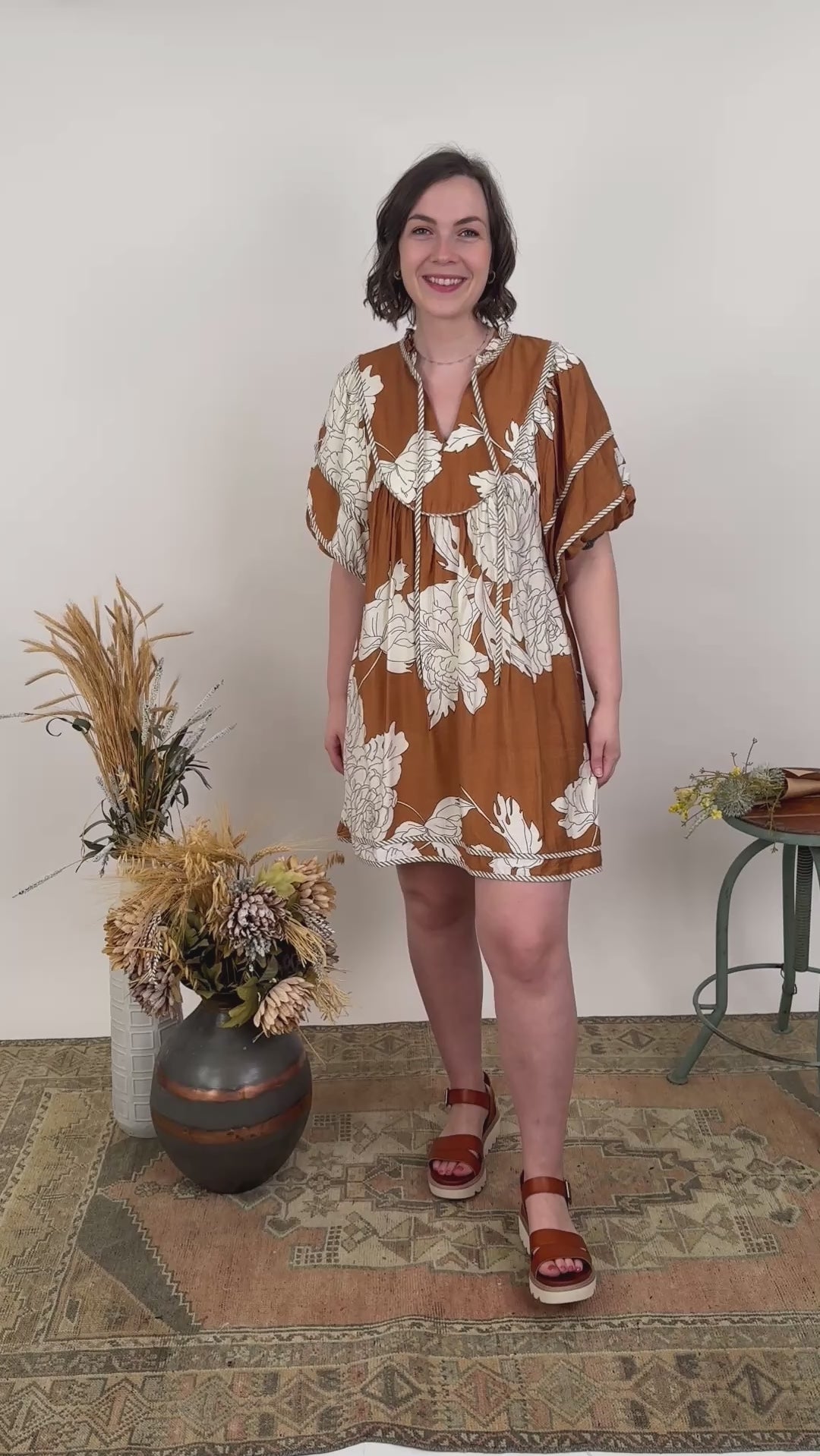 This precious dress is waiting on you! It has the most lovely drape to it, beautiful floral print, and v-neckline with a bow tie closure. It's the perfect dress for casual events and can easily be dressed up or down.