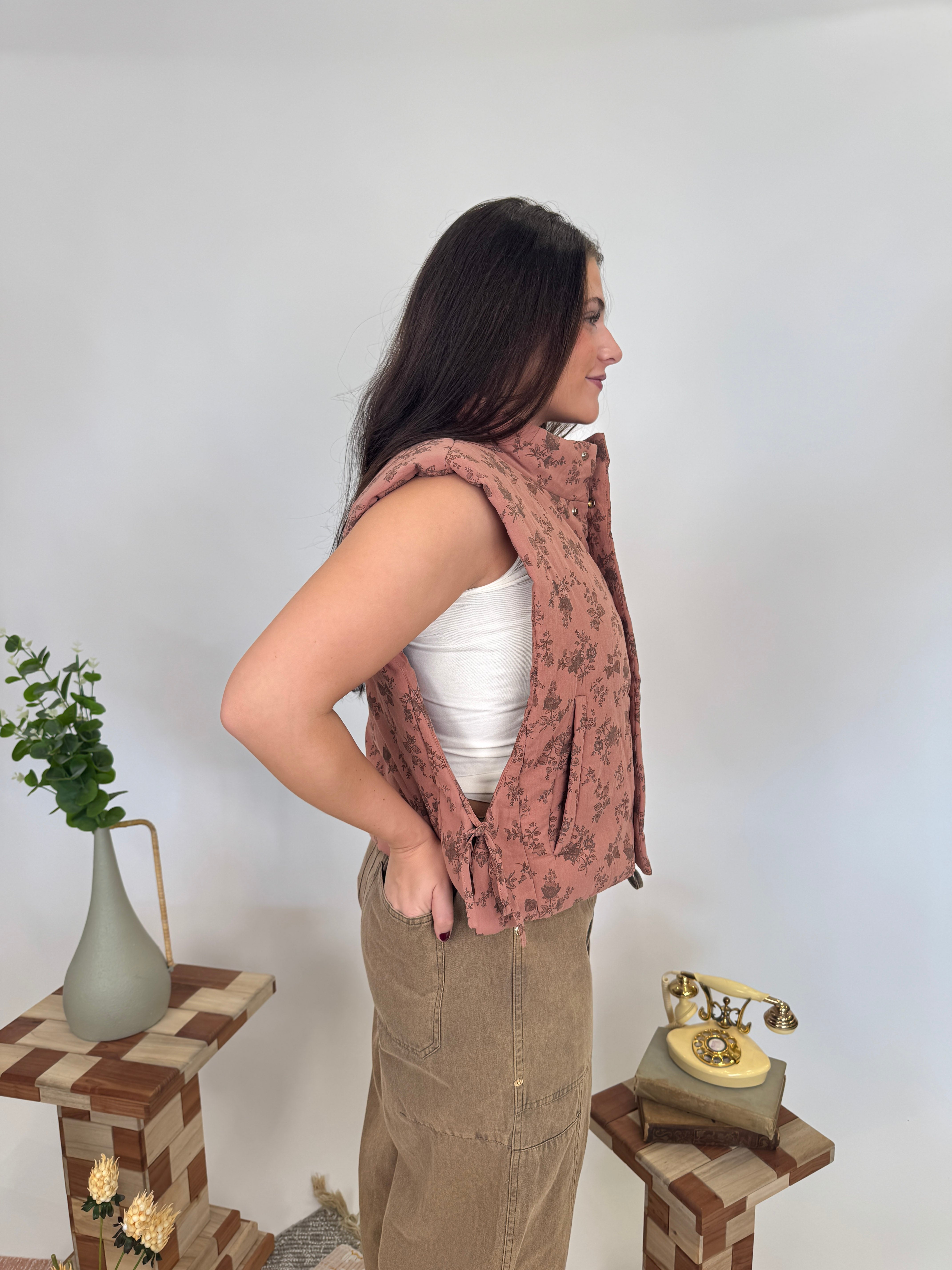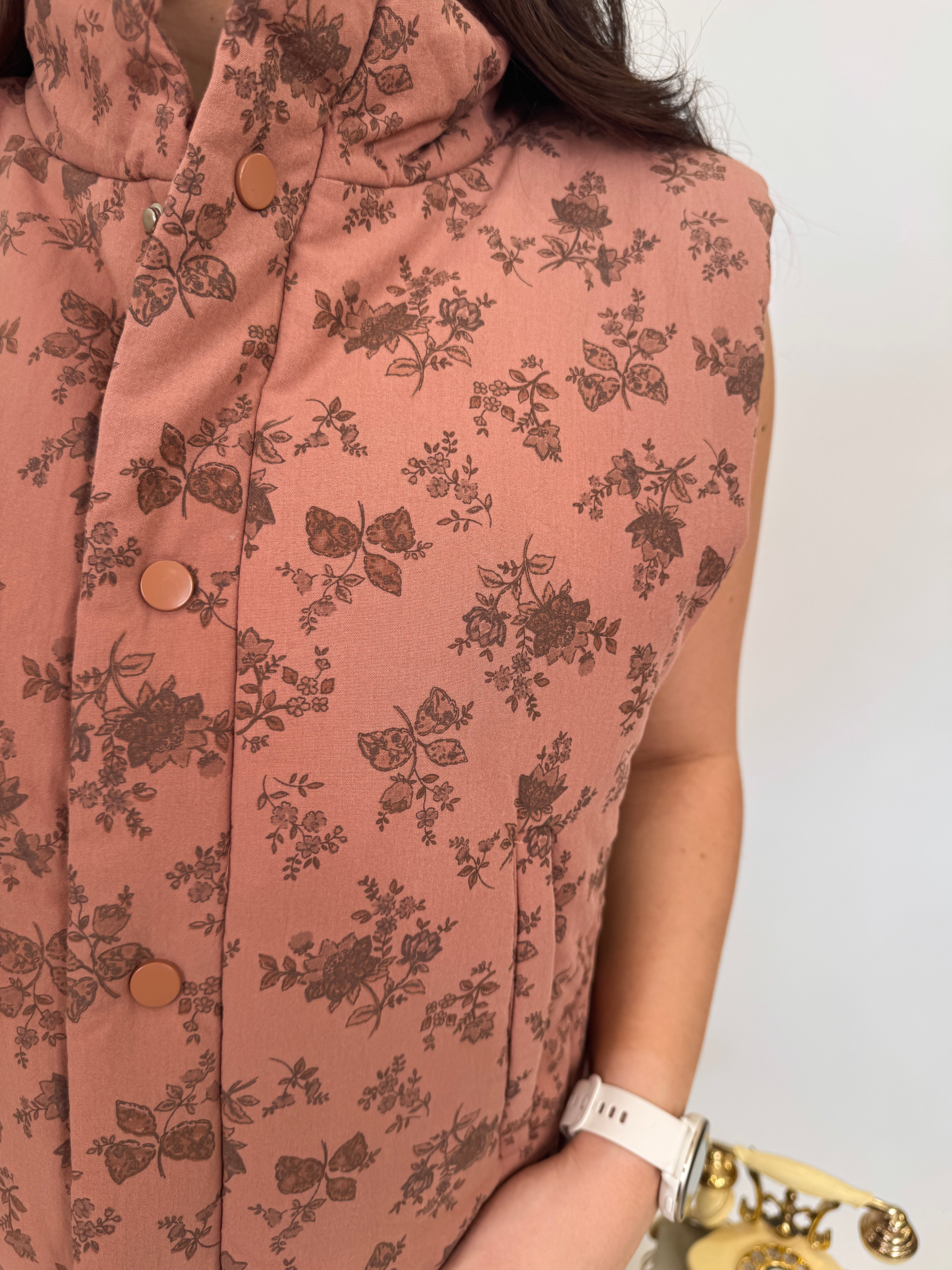 The Counting Blessings Floral Padded Vest is a cozy statement piece for cooler days. Lightweight but warm, it layers beautifully over sweaters, tees, or dresses while adding a playful floral pop to your outfit. Practical pockets and a flattering cut make this vest perfect for brunch, errands, or outdoor walks. Celebrate every day with a touch of warmth and charm.