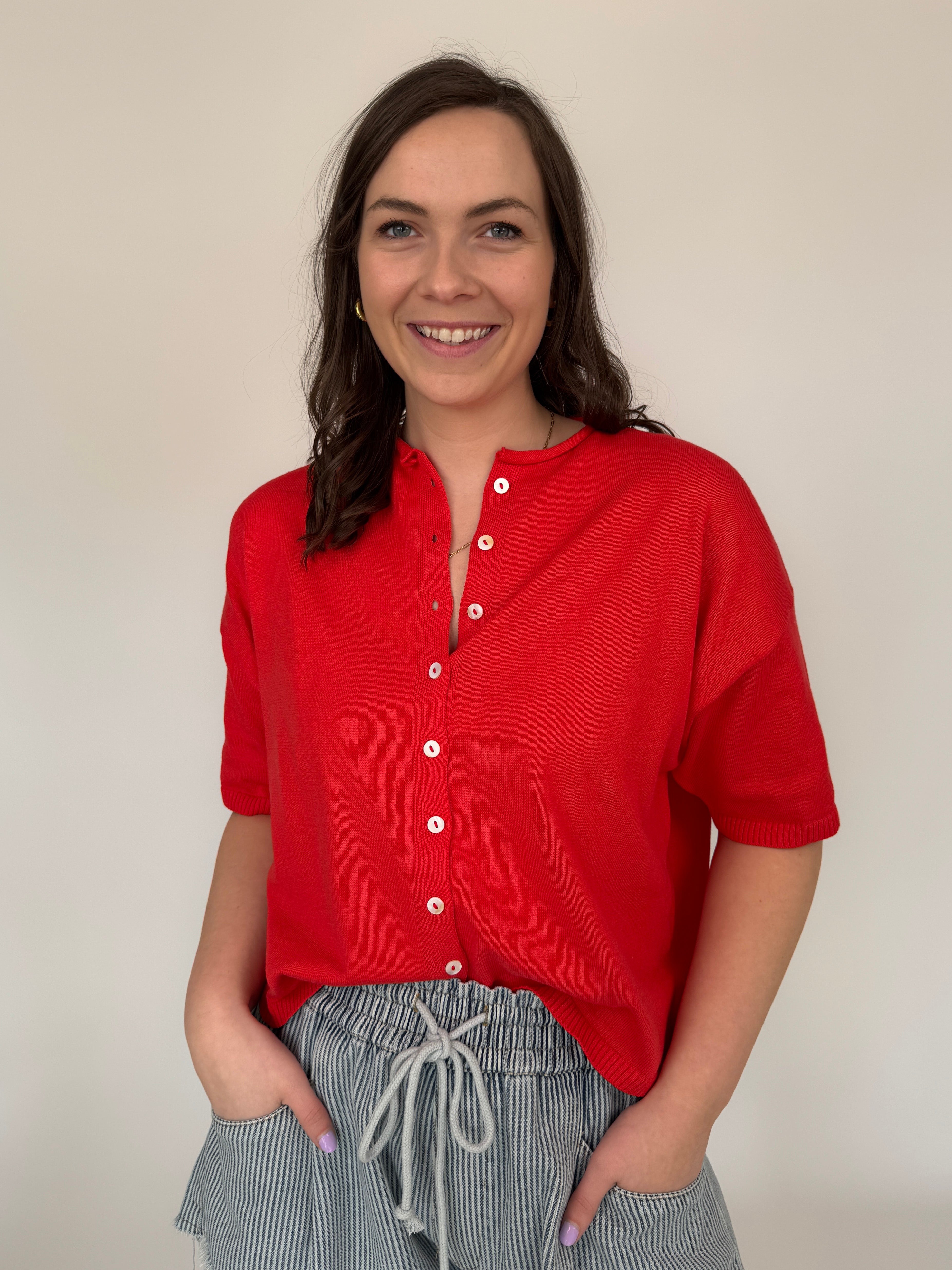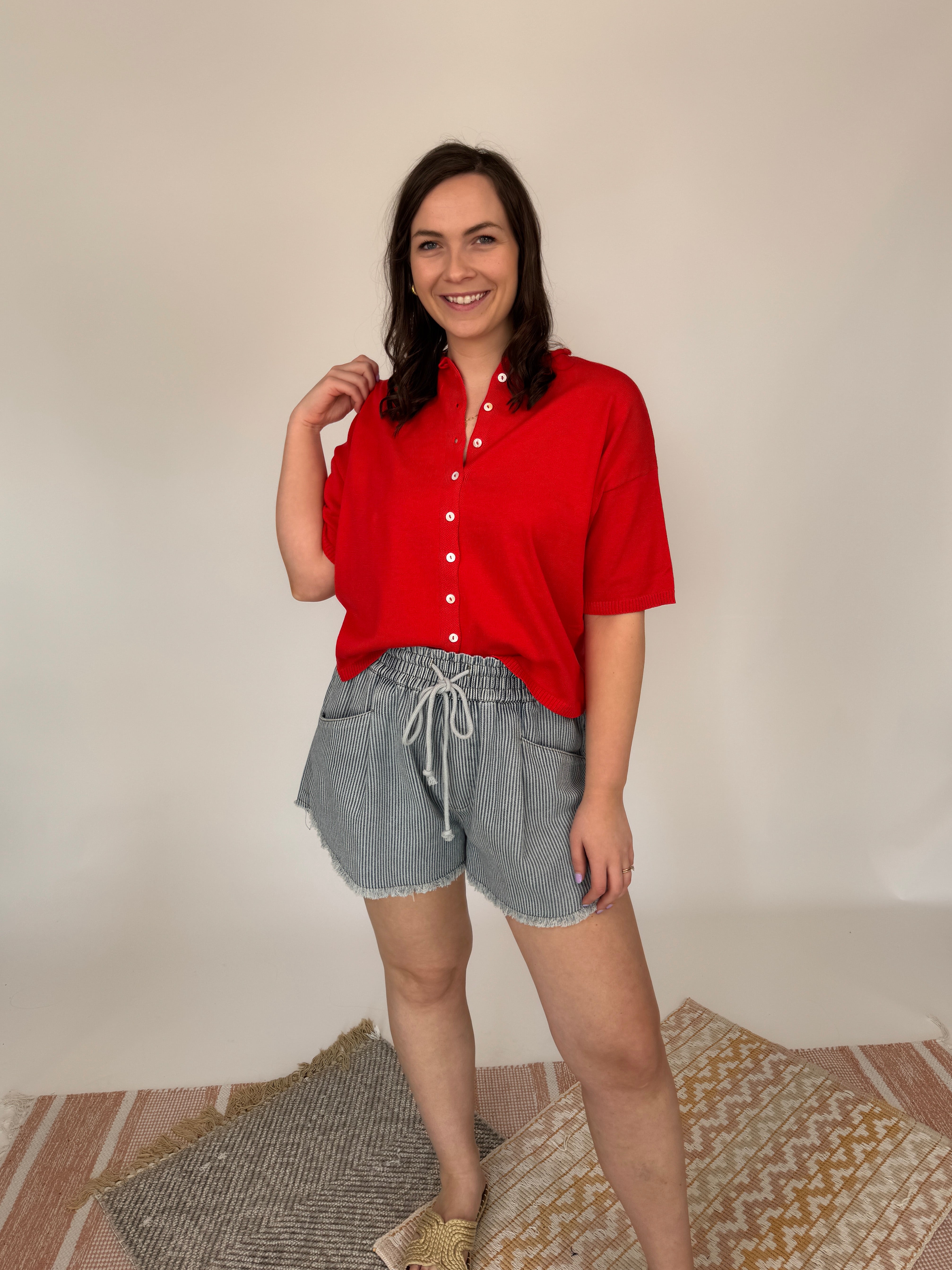 This Staff Favorite won't last long! The Dream Again Cardi has a soft material, front button up feature, and rolled edges. We are loving this piece paired with a fun short like the Seas the Day Short or Dottie Gingham Short!
