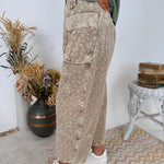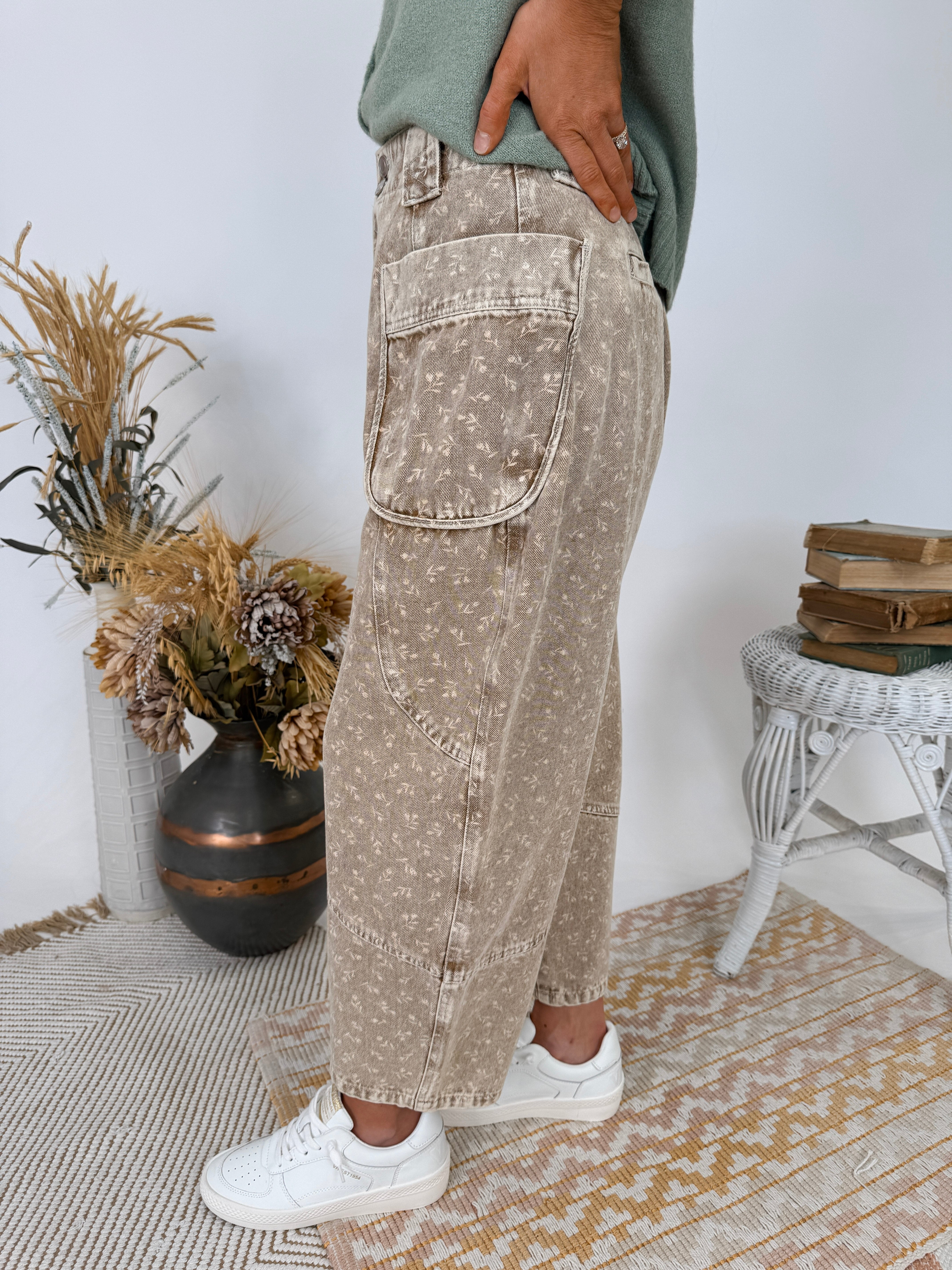 Discover the perfect blend of vintage charm and modern comfort with the Ellie May Floral Barrel Pant. These aren't your average trousers – featuring a unique mineral wash finish with subtle floral distressing, these barrel-leg pants bring effortless style to your everyday wardrobe. The trendy silhouette and oversized cargo pockets make them both fashion-forward and functional.