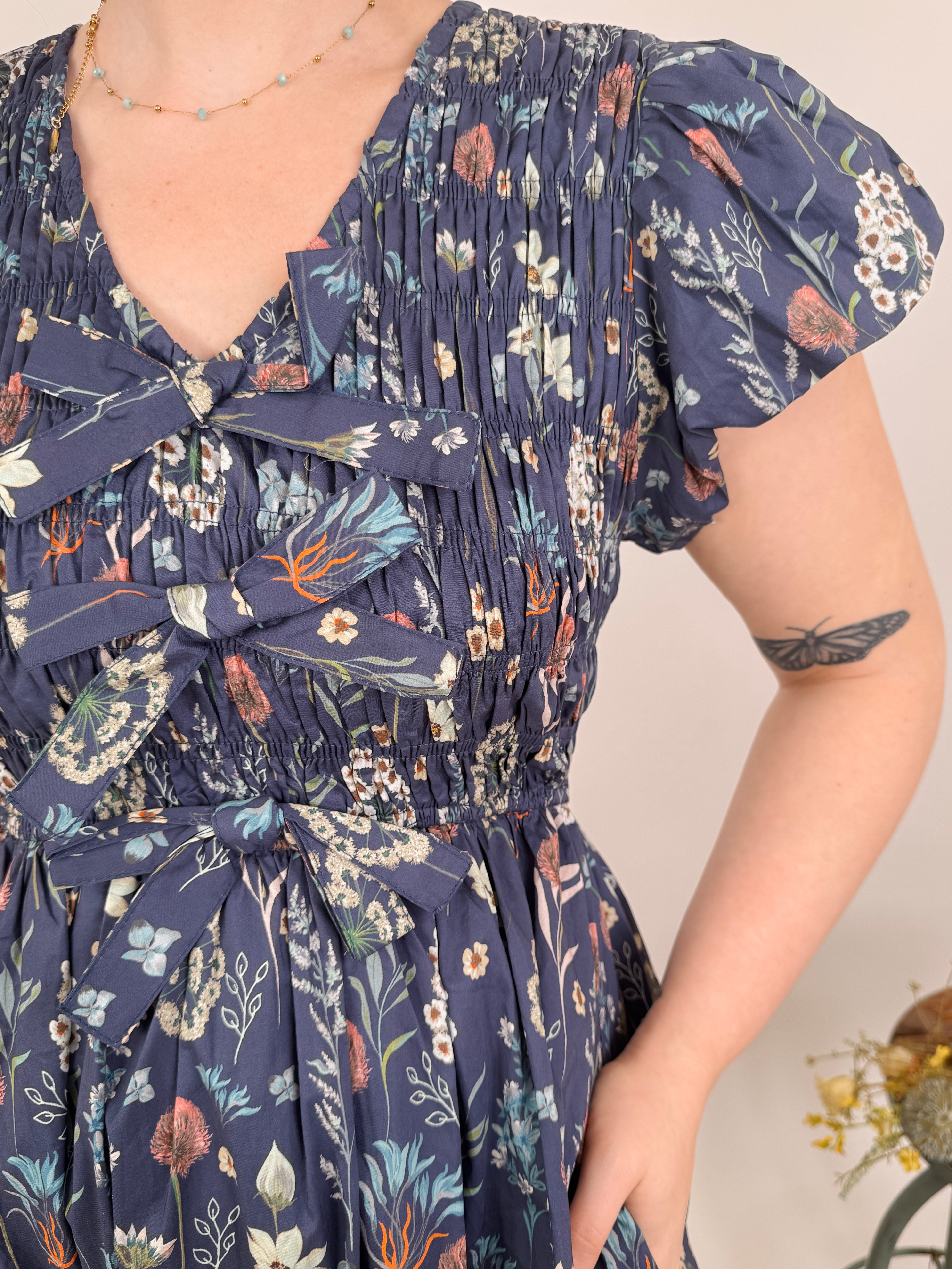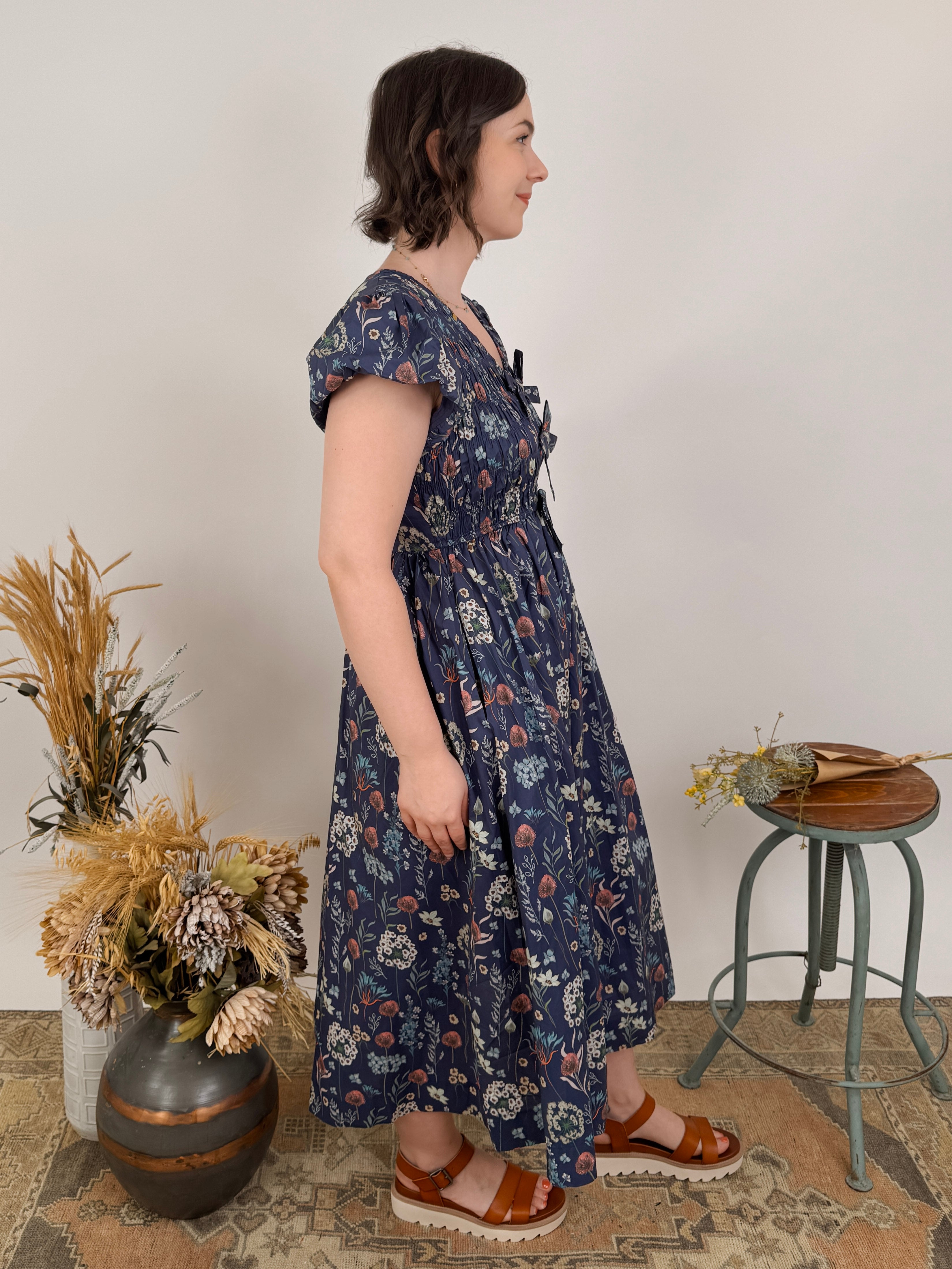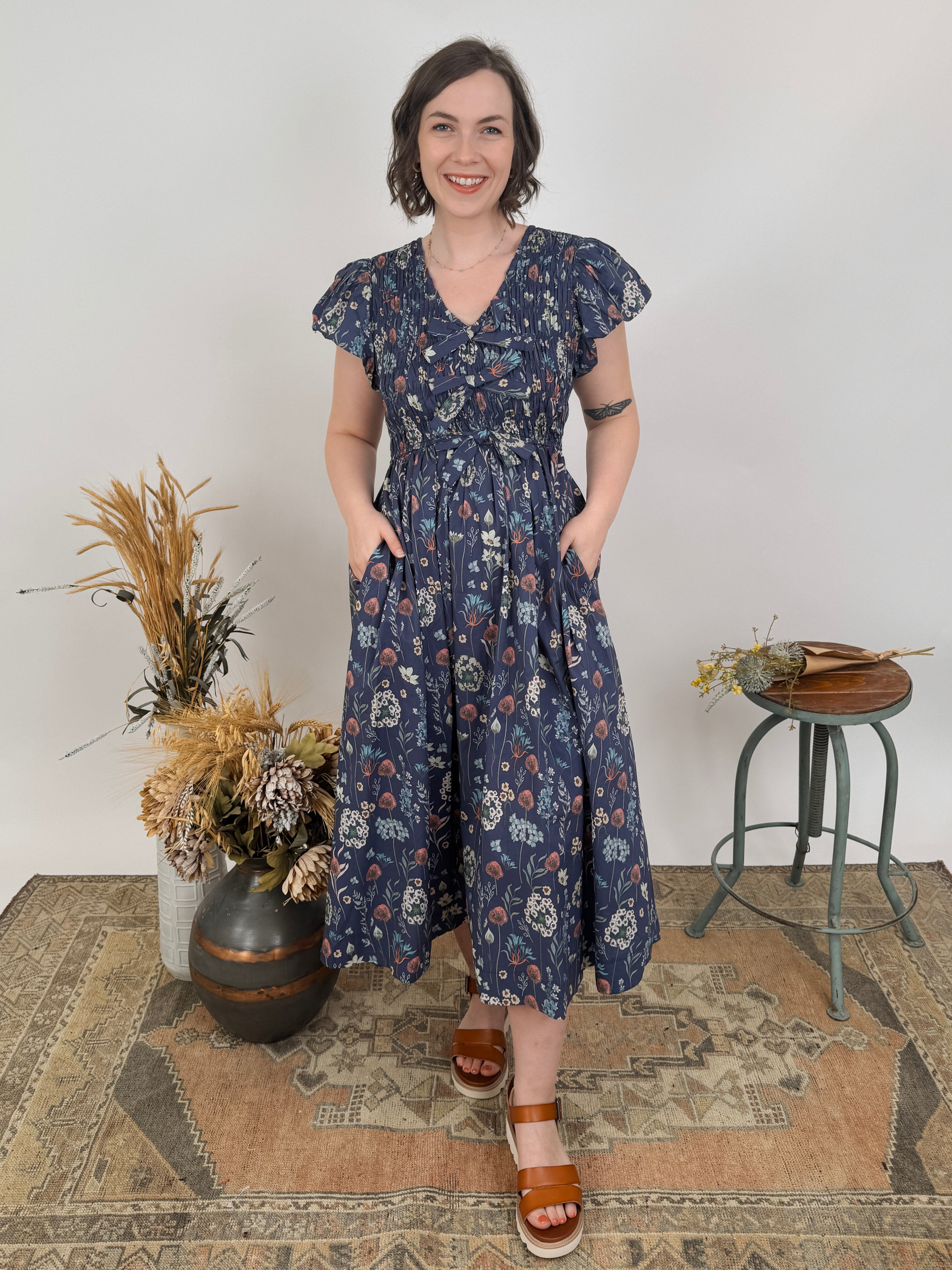 The Greta Midi Dress has a precious floral print, flattering smocked bodice for comfort and ease, and side pockets (which make everything better)! We love the sweet bow details at the bust. This dress is perfect to wear for Sunday Mornings and Wedding Shower events.
