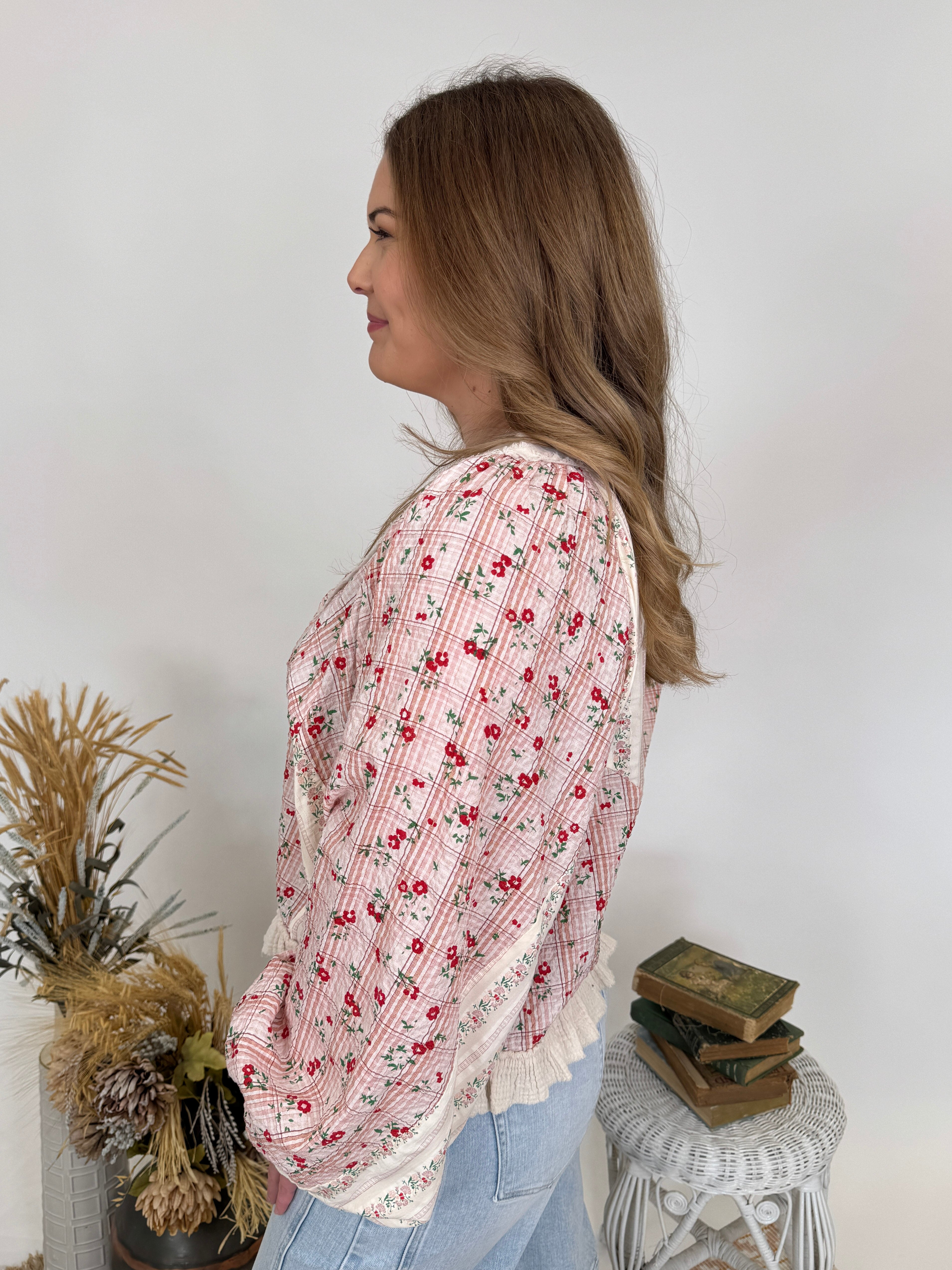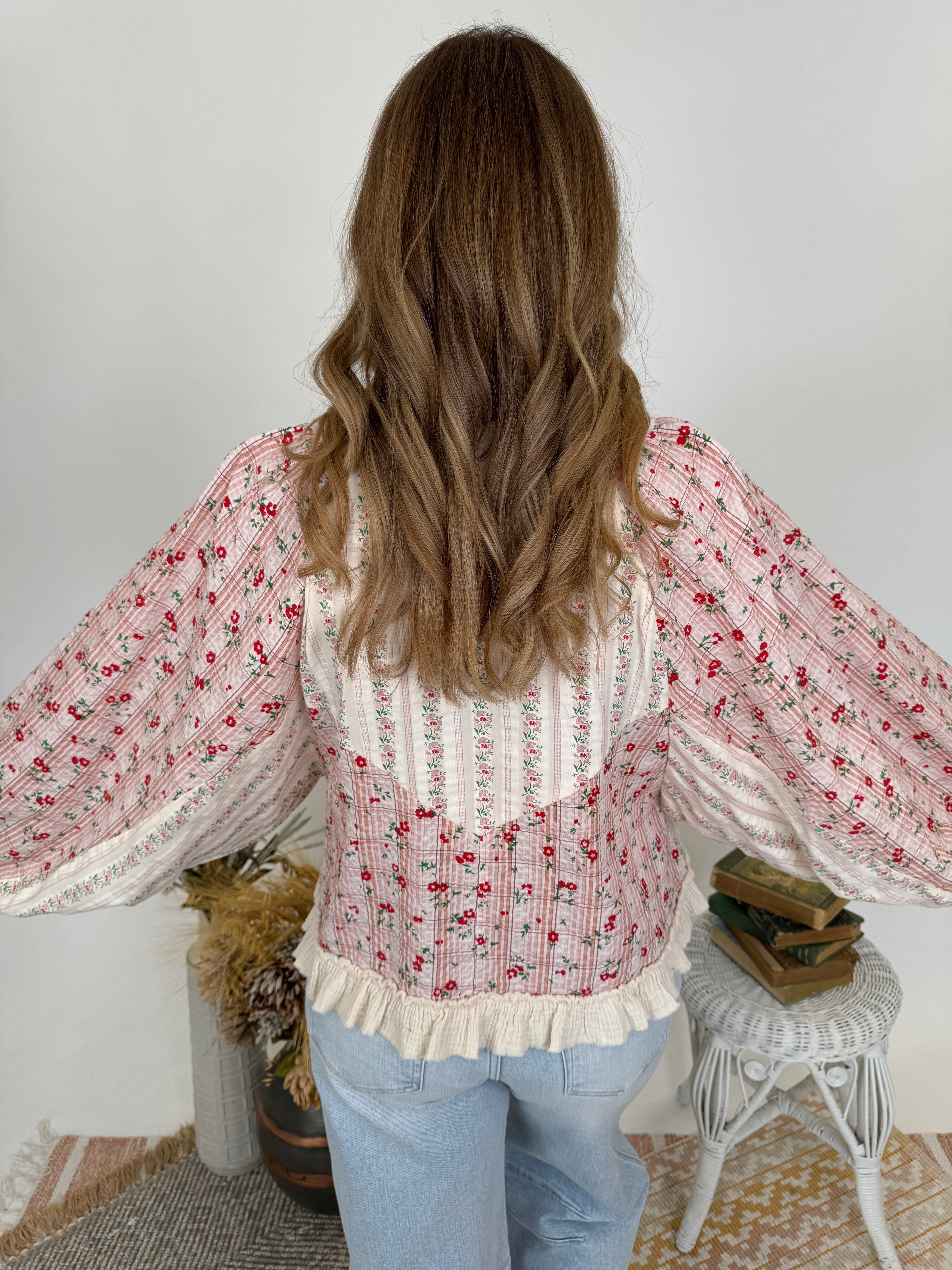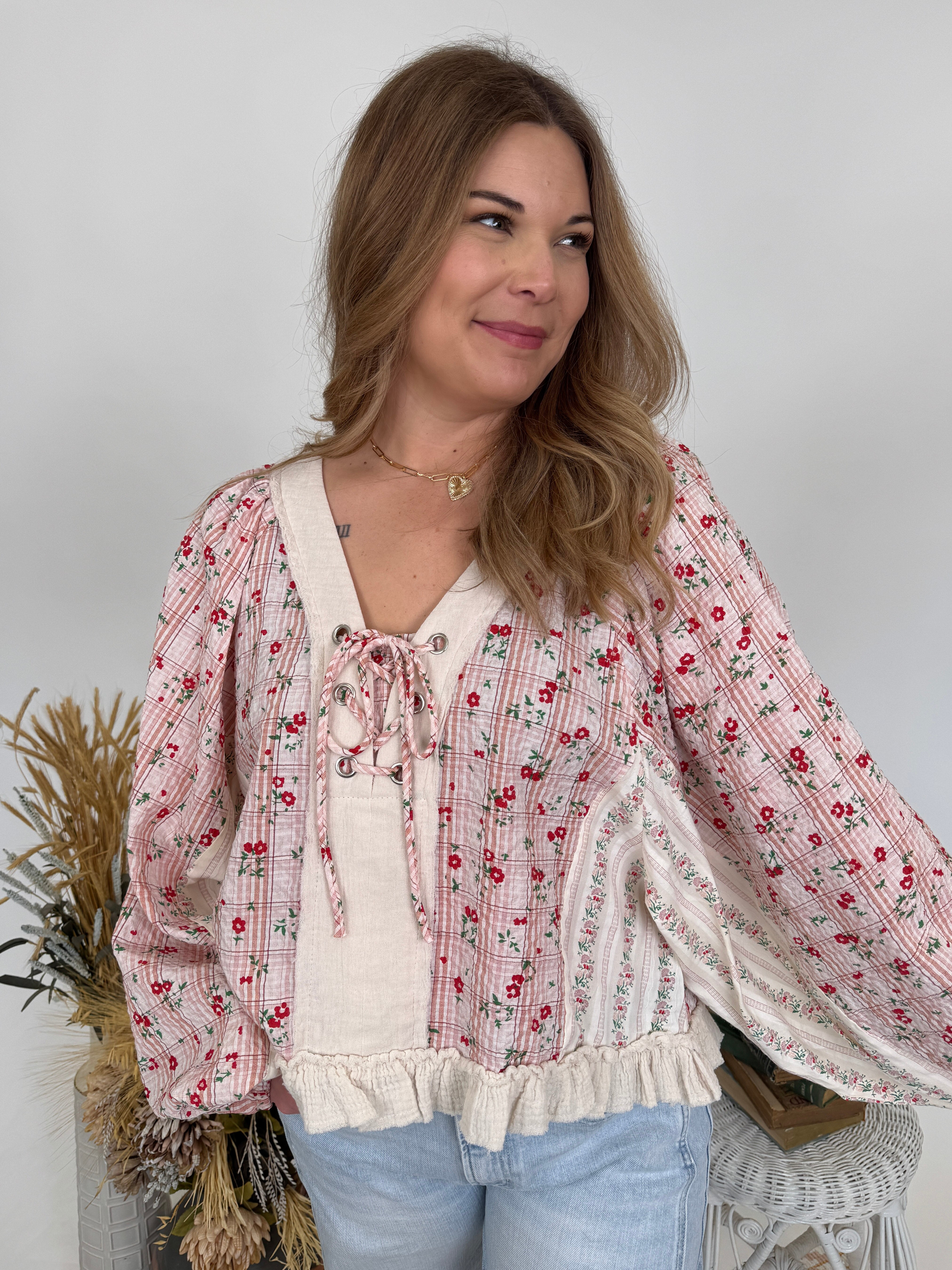 Some pieces tell a story before you even say a word – and the Presley Patchwork Patterns Top is a whole novel of charm, character, and vintage-inspired beauty. The mixed patterns create visual interest that's never boring, while the romantic details transport you to simpler times. It's cottage-core meets prairie charm, with a modern sensibility that makes it wearable for today.