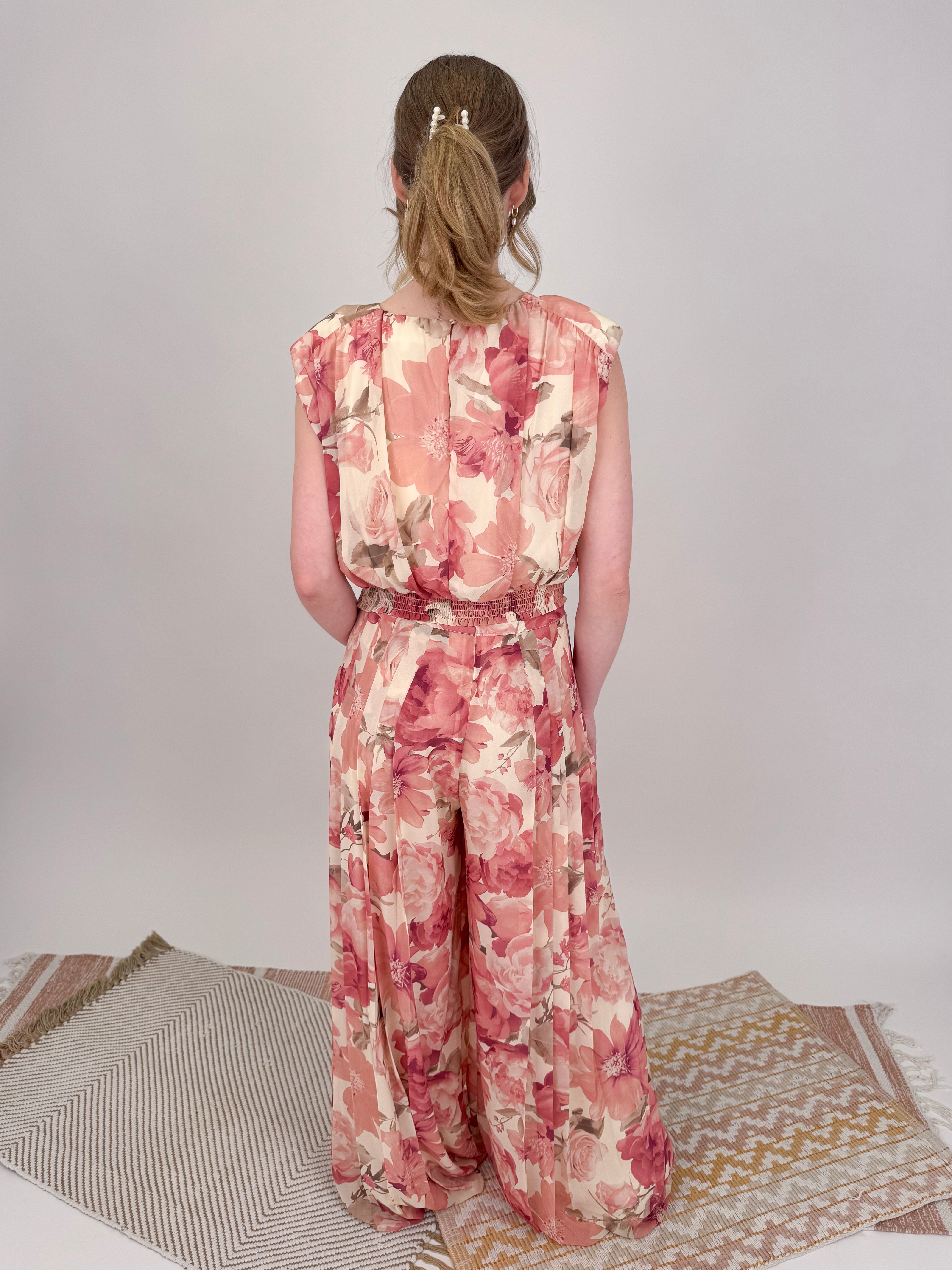 Coordinated two piece set in a gorgeous large scale floral print in shades of