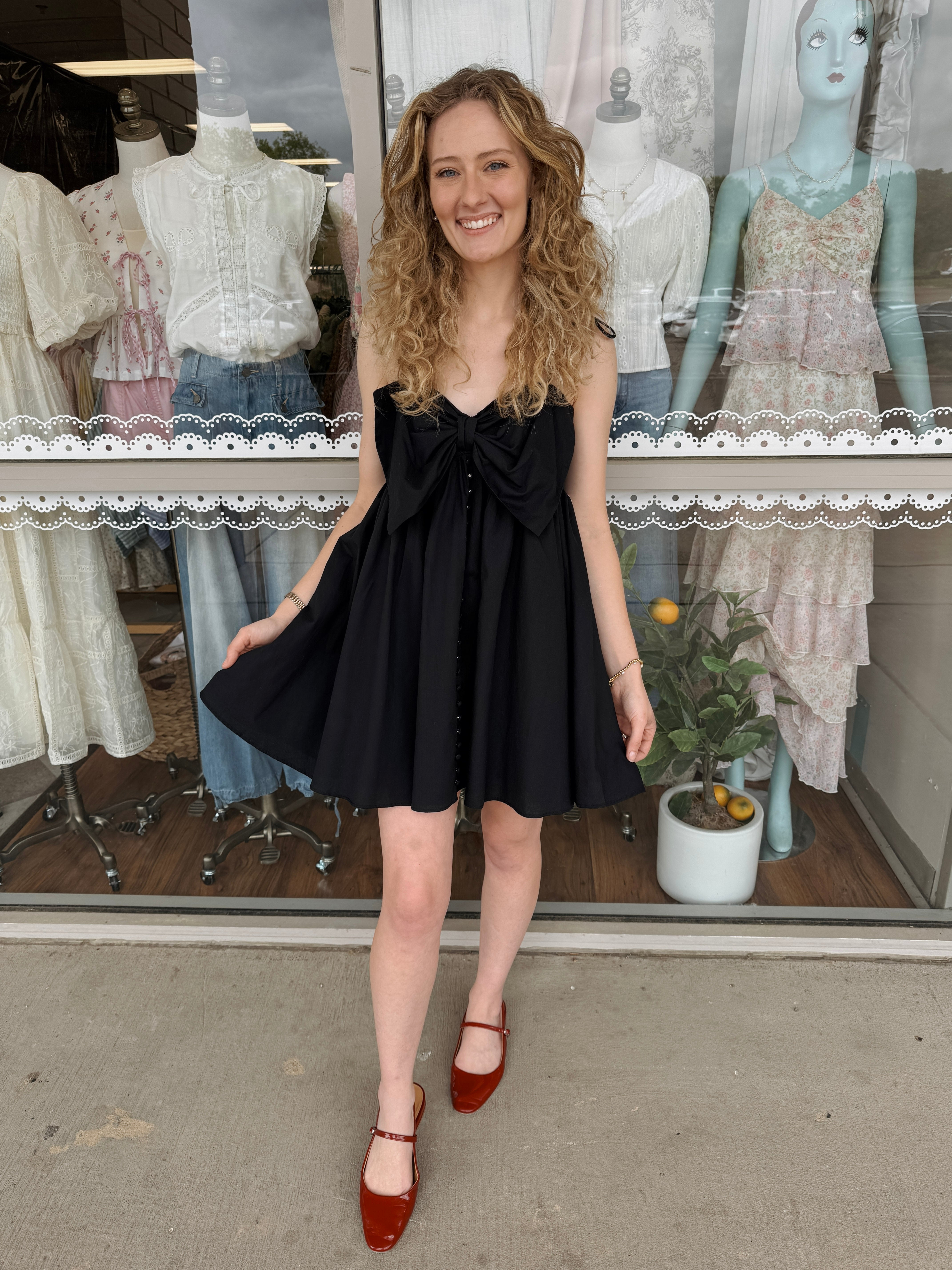 This BEST SELLER is back and now available in Yellow, Black, and a Blue or Taupe Pattern. The Julianna Dress has adjustable spaghetti straps, front bow design, and working front buttons. This dress is a no brainer for weddings, showers, and birthday events. You'll be standing out for good in this adorable mini dress!