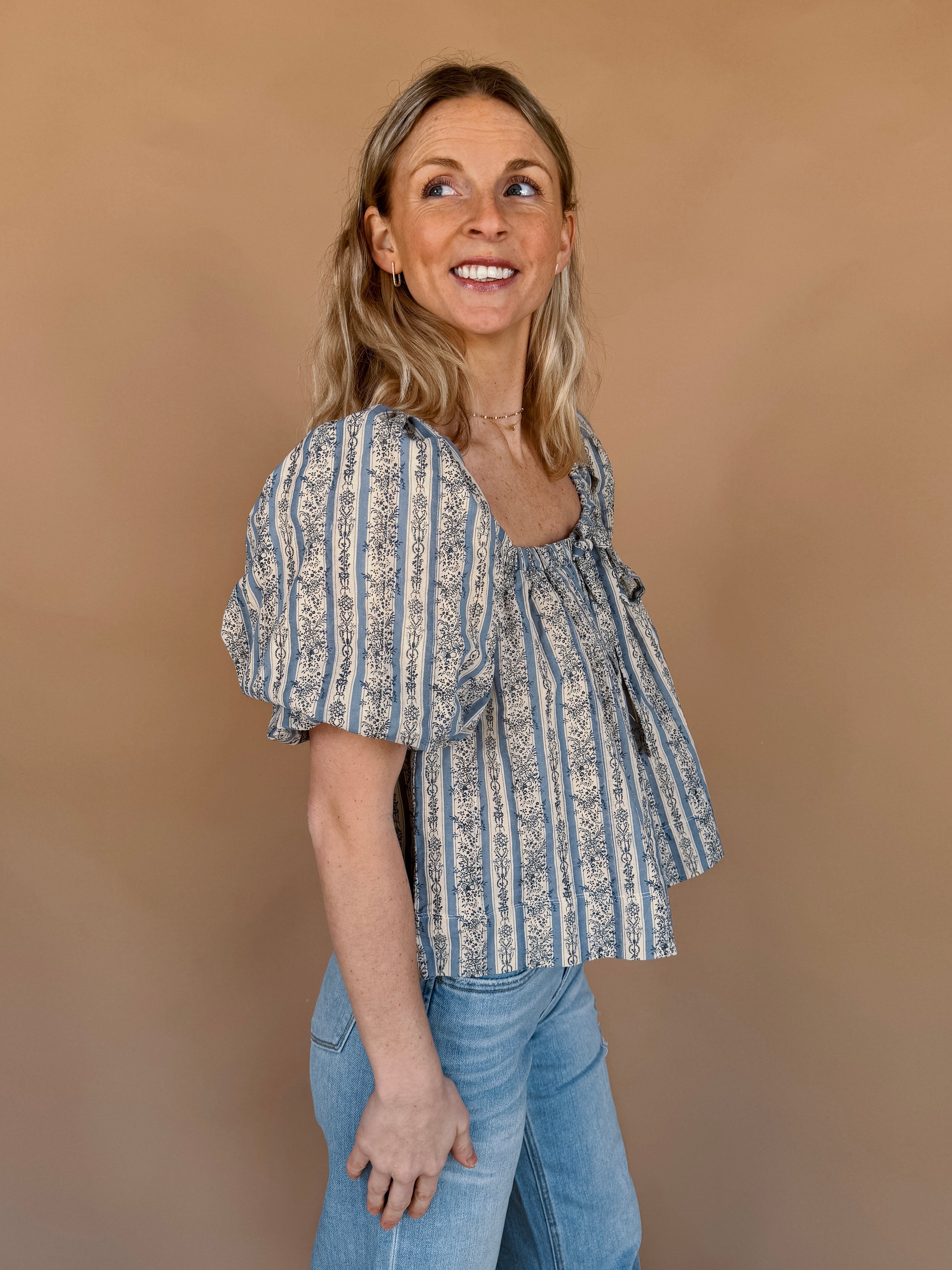 Umm hello Kelly Blouse!!! This top has a loose, flowy babydoll cut, with a high waist seam that gently flares out.