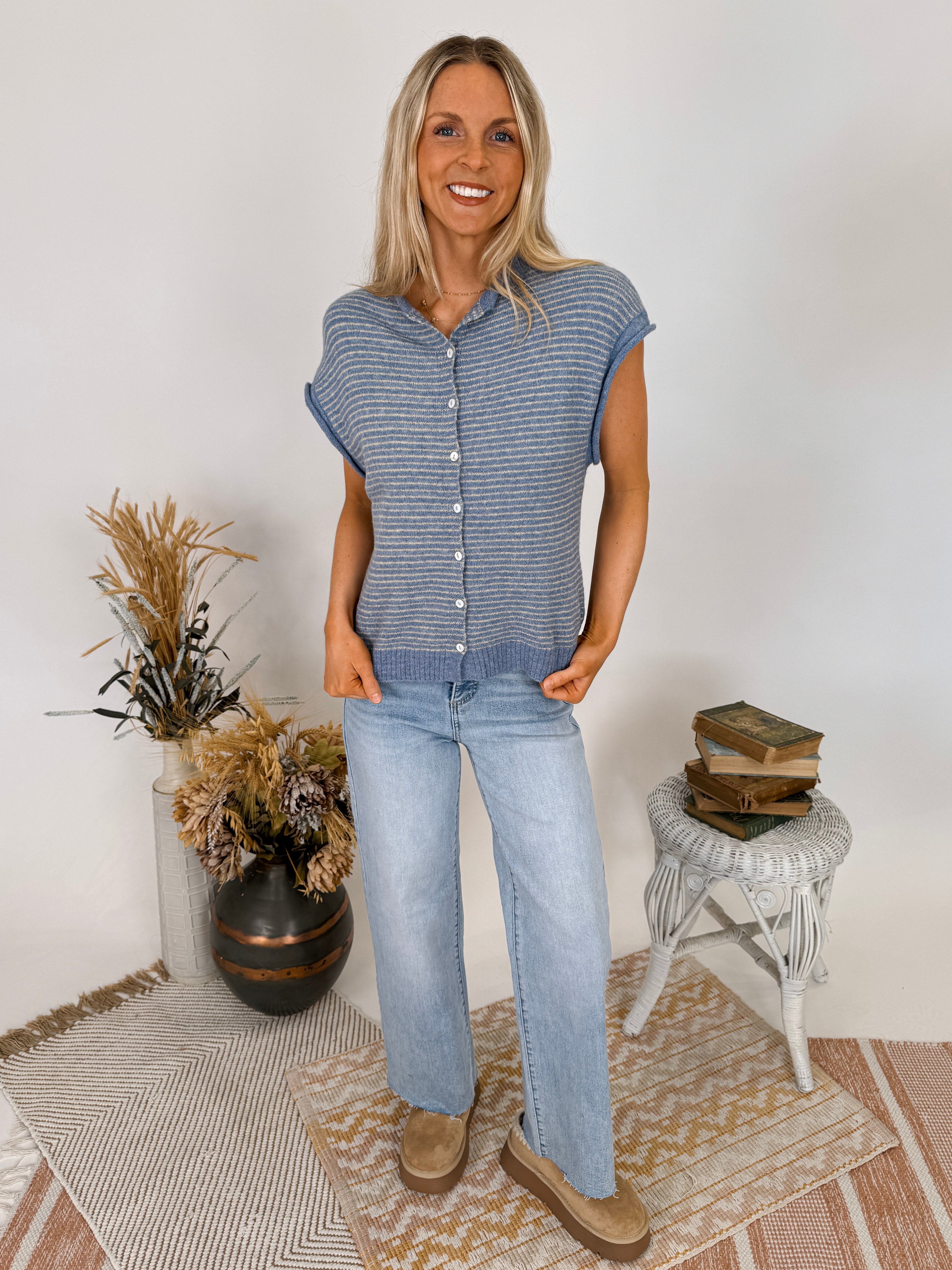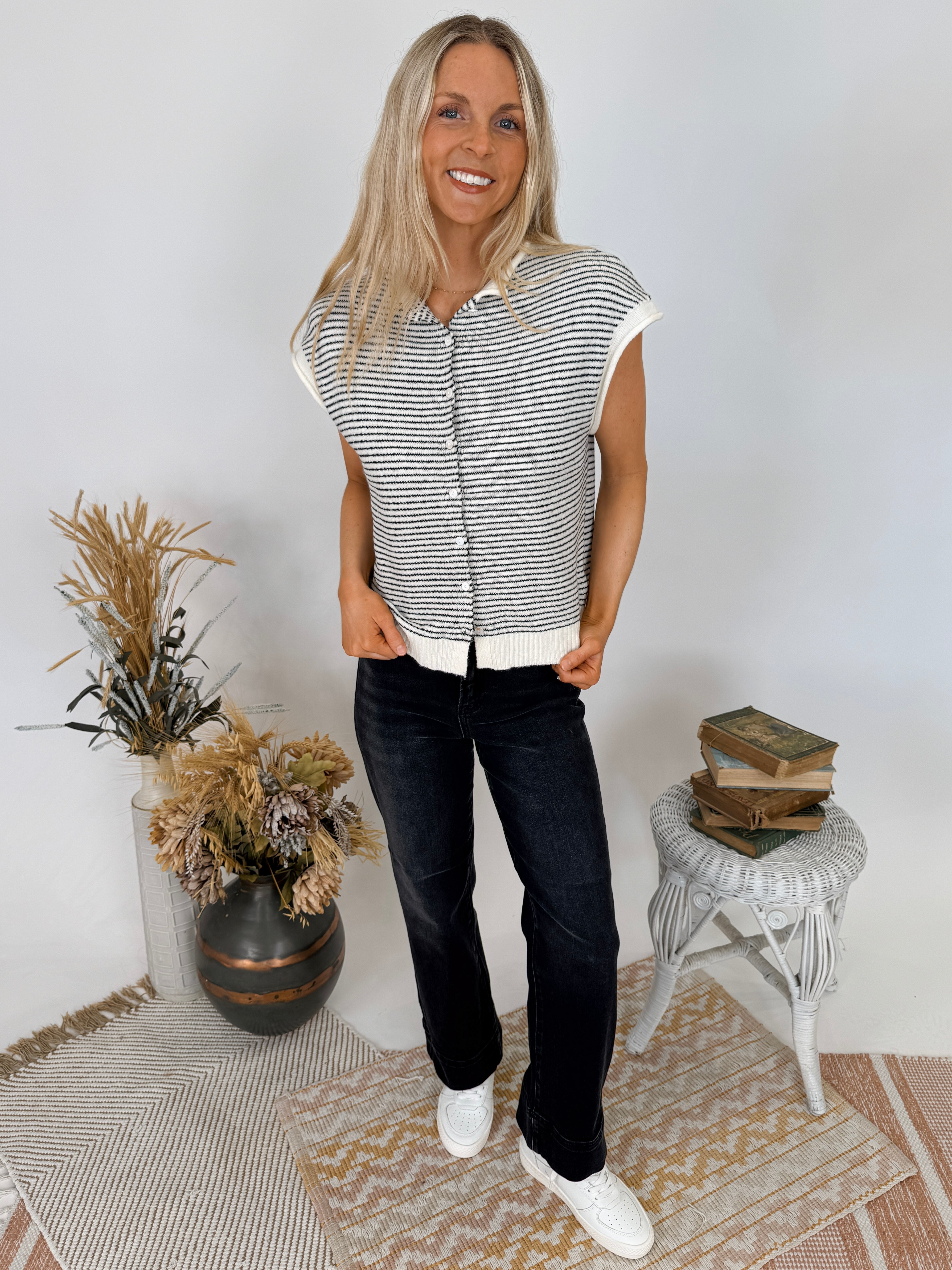 This Knit Sweater Vest has our heart! We think this would be a great transitional piece to wear with jeans for back to school days. It can be dressed up with trousers for work as well!