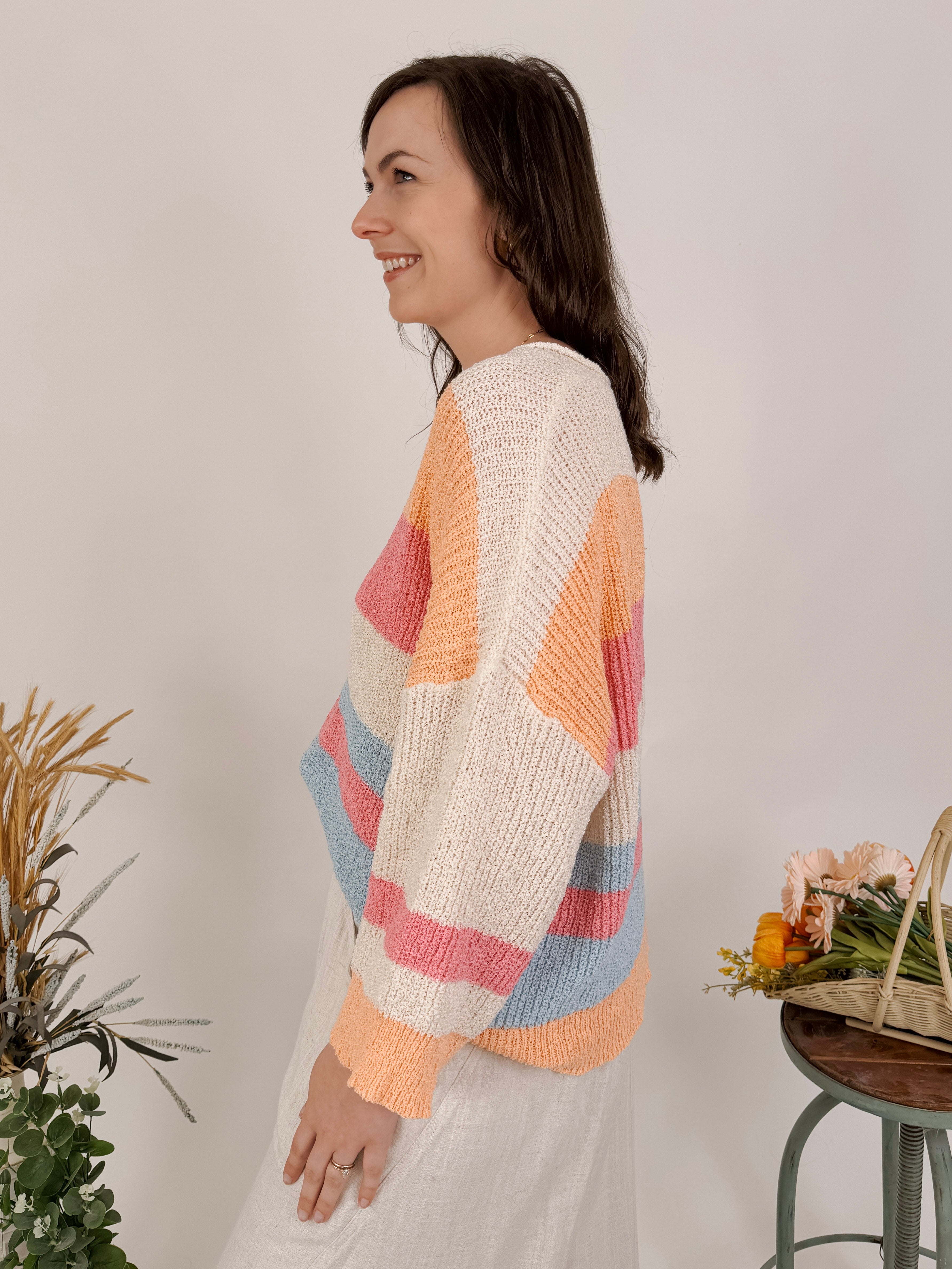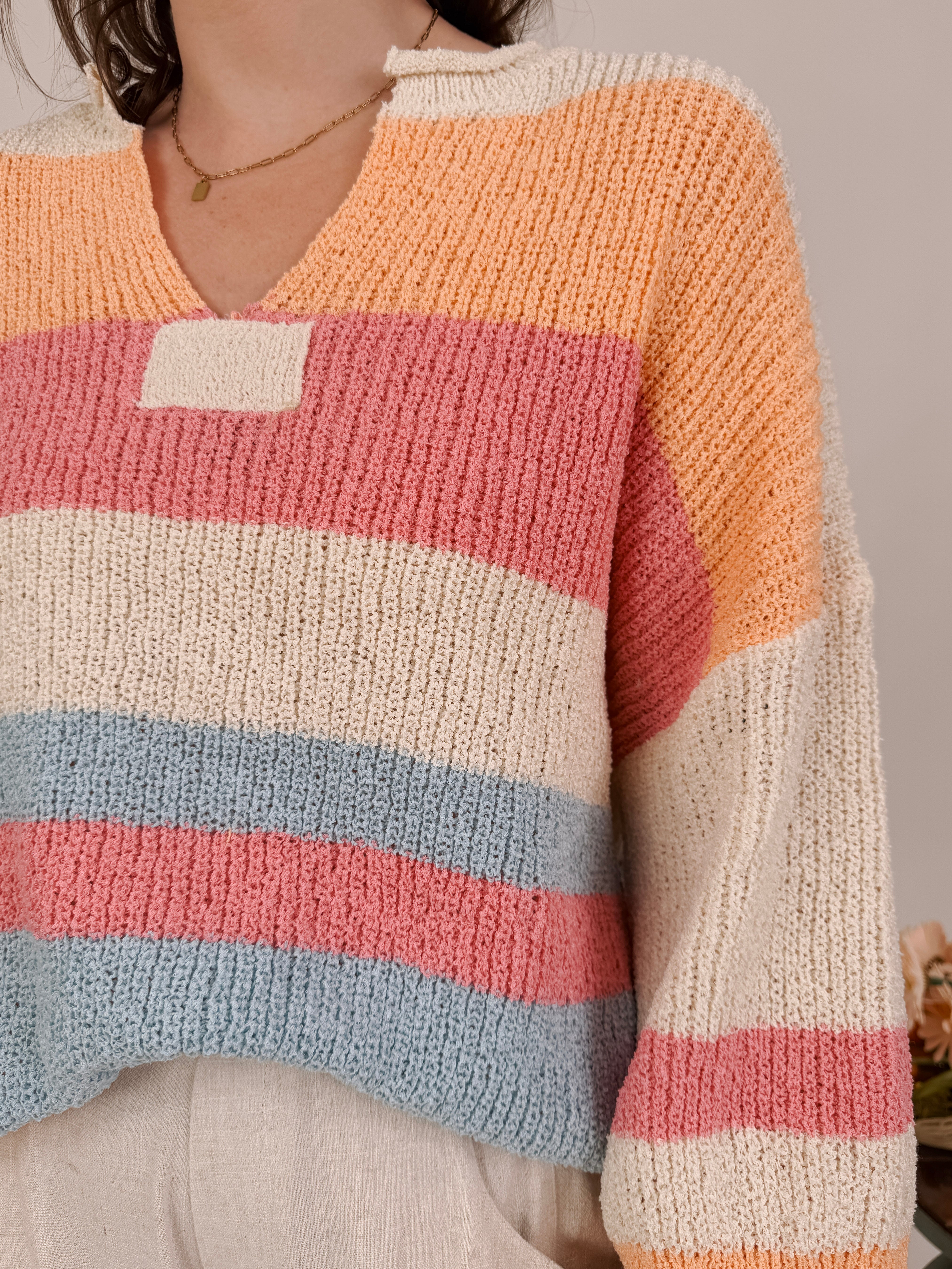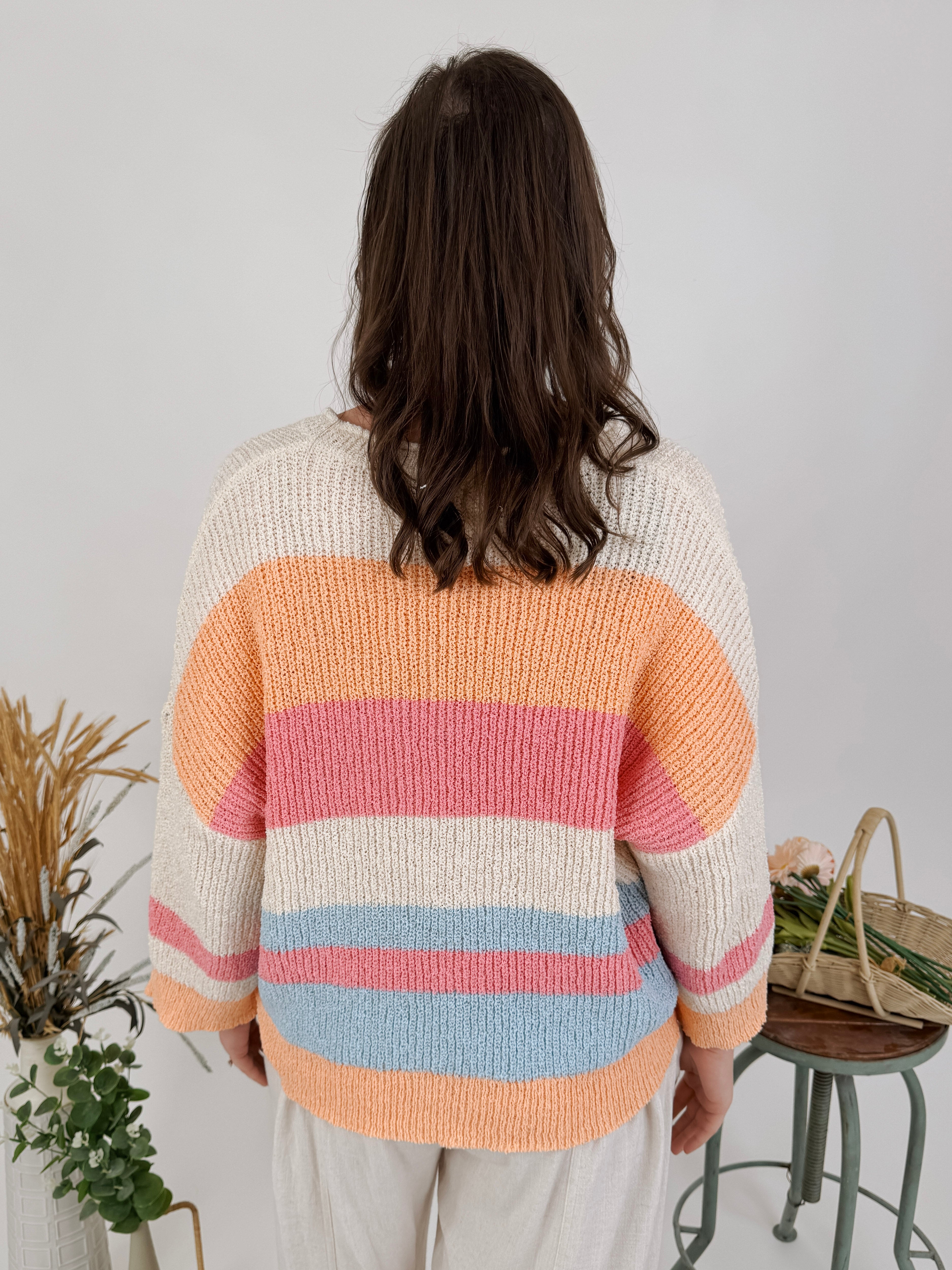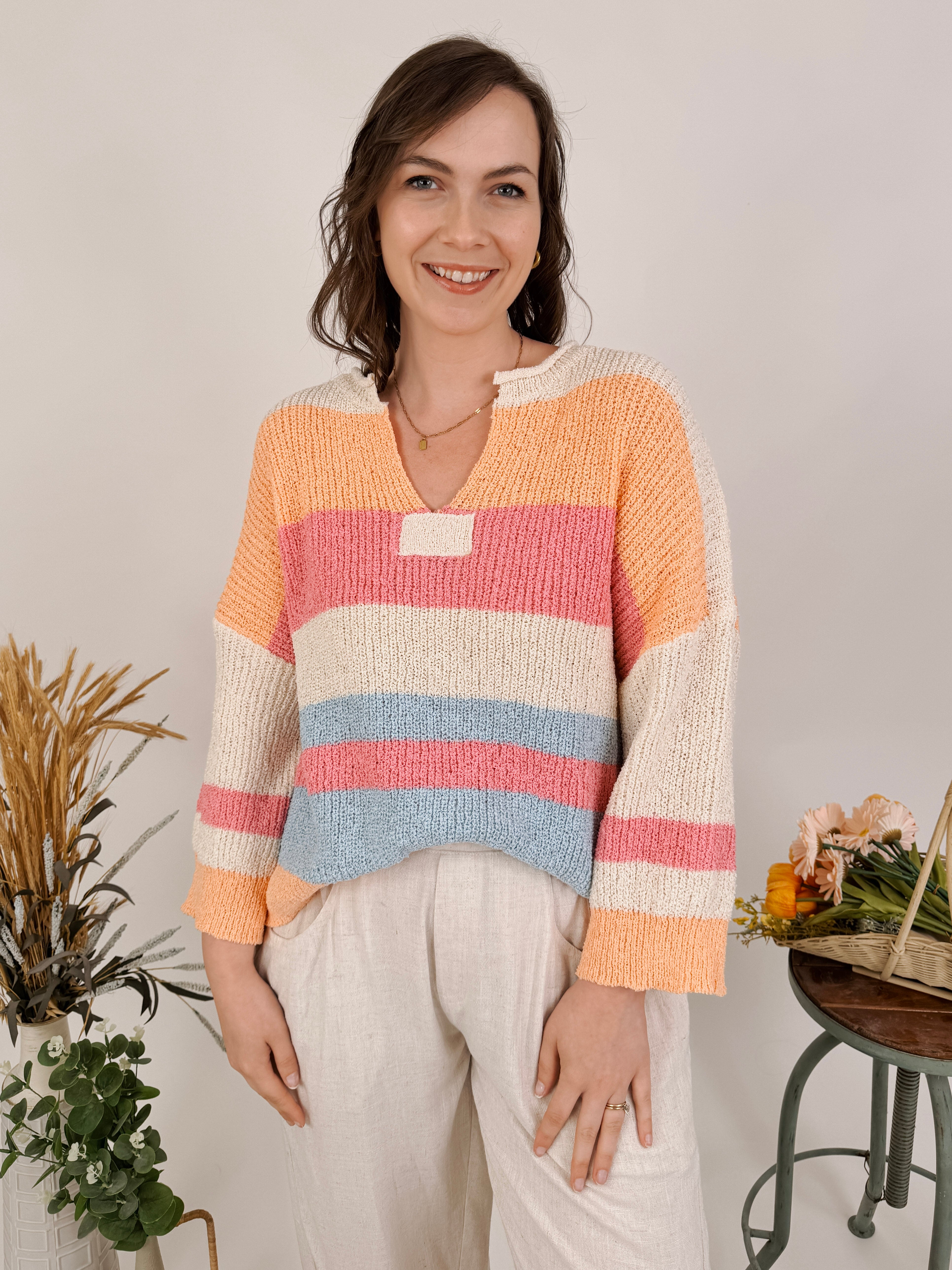 The Lynette Top is the star of the show! We adore this lightweight knit top with its 3/4 sleeve, vibrant colors, and v-neckline. This is the perfect summer top to wear for vacations with shorts or even for work with a pair of trousers. Throw on a wedged sandal and you've got a stellar outfit!