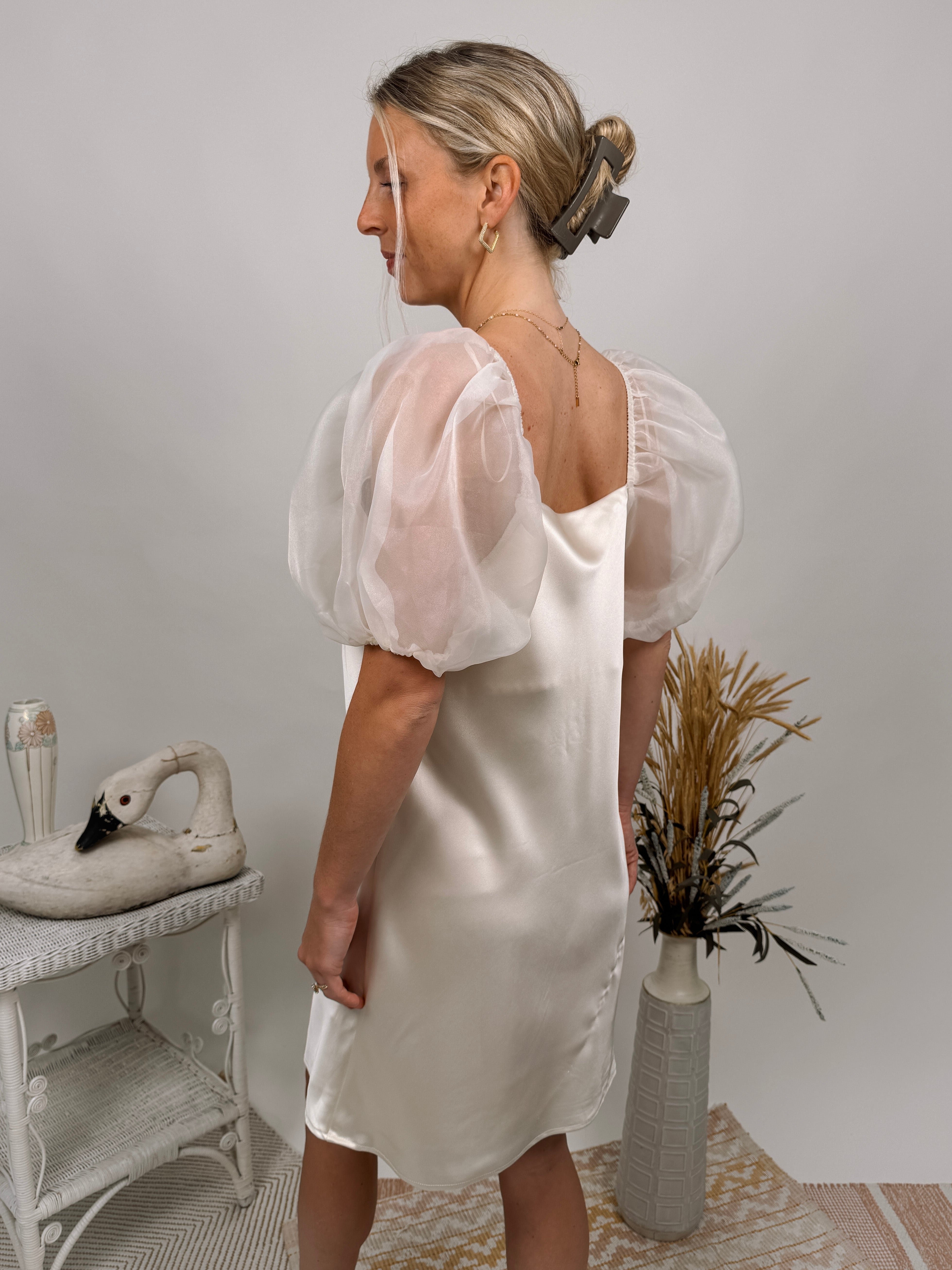 Whether you're heading to a bridal shower, rehearsal dinner, or engagement party, we’ve got the perfect dress for you Miss! The Nellie Dress has a lovely satin material, mesh puff sleeves, and A-line shape. This BEST SELLER sold out the first time we had it so make sure to grab yours before it's gone!