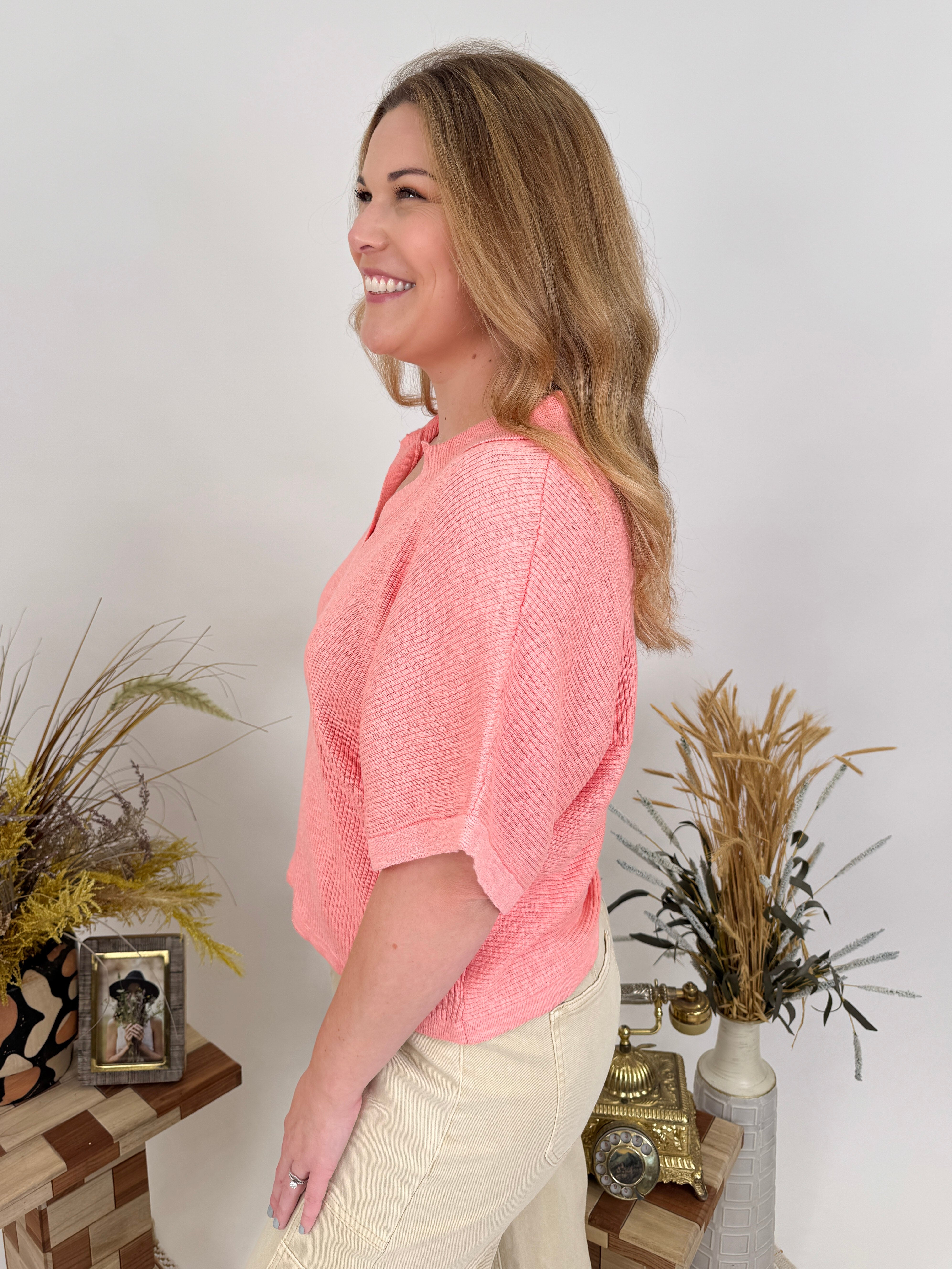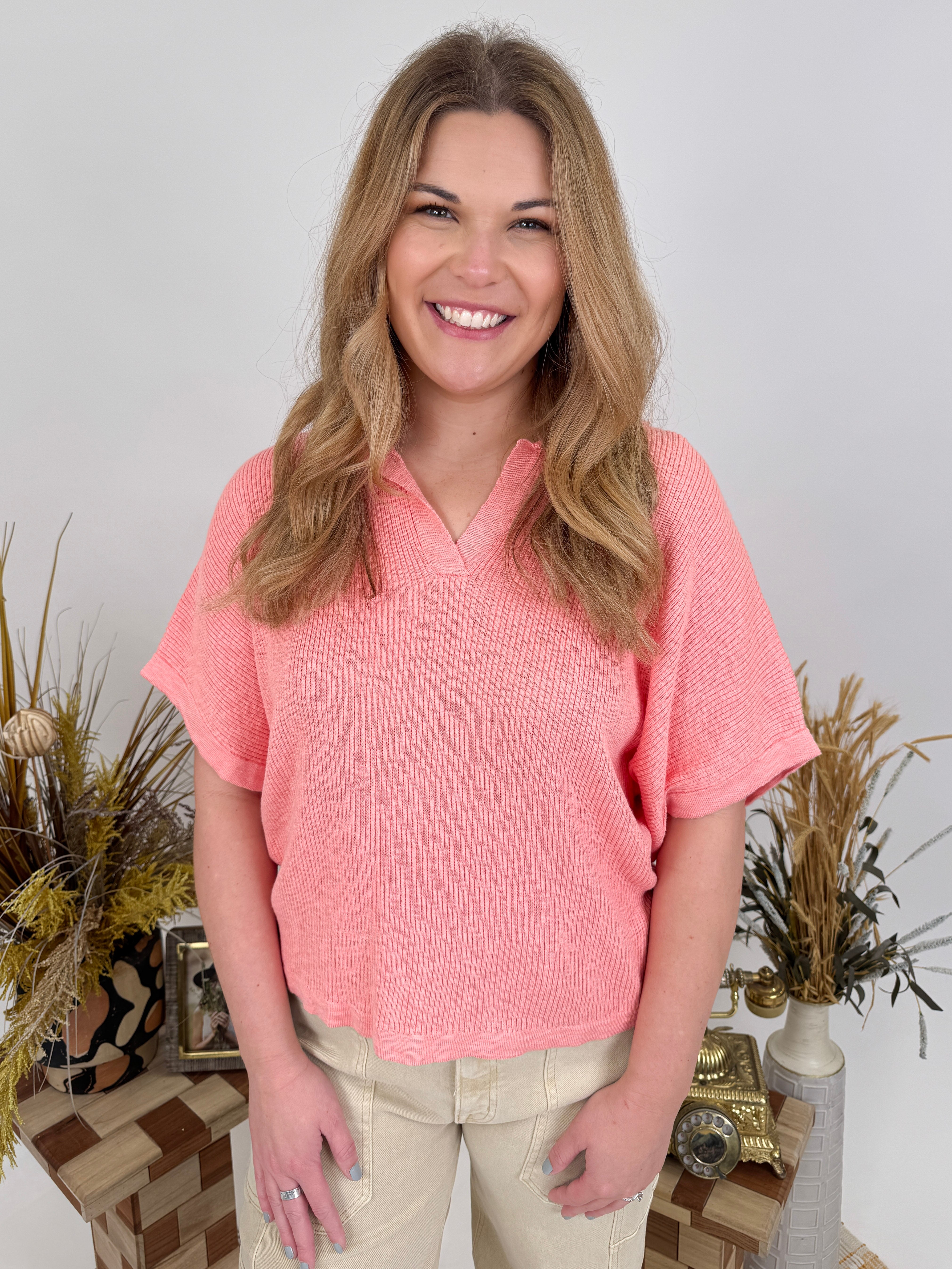 The elevated basic you'll reach for on repeat. Soft rib knit, a polished collar, and that perfect relaxed fit β the Peaceful Bliss Top brings calm confidence to your everyday style.