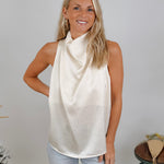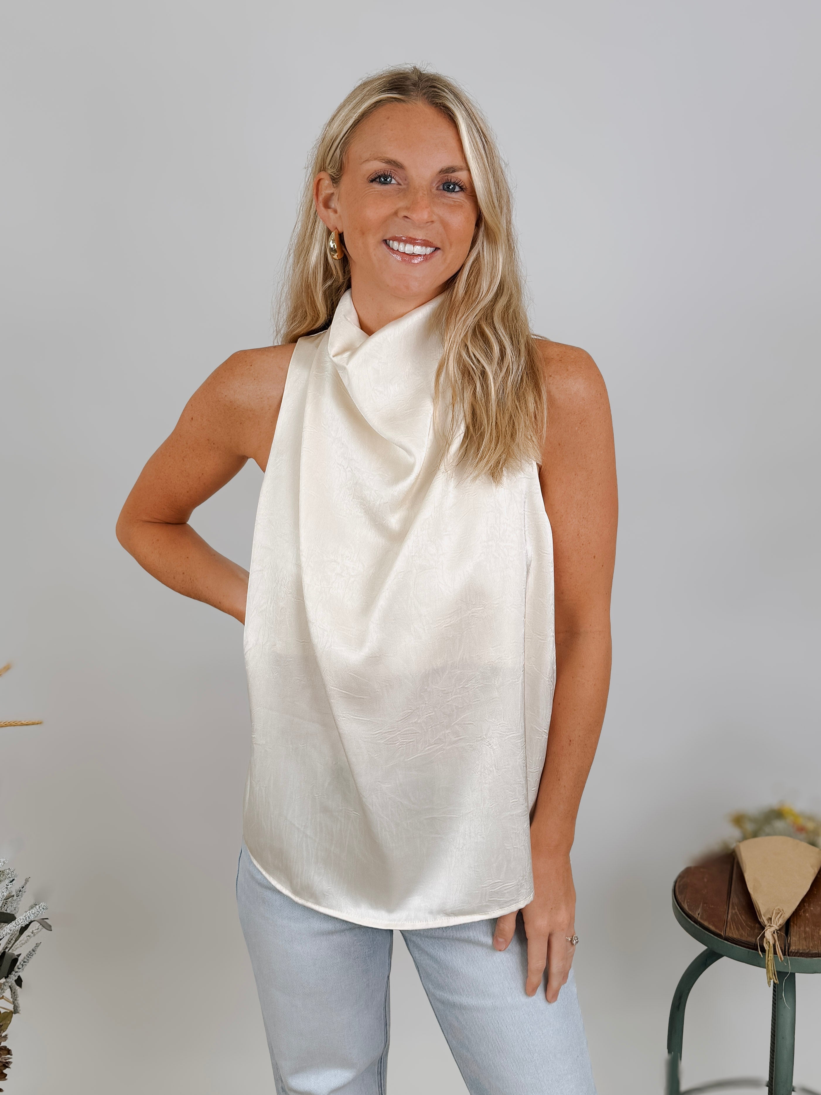 The Rare Jewel Blouse has a lovely satin look, cowl neckline, and is half lined underneath. This is the perfect date night top that can be styled with jeans or dressed up with a trouser for an office day look!