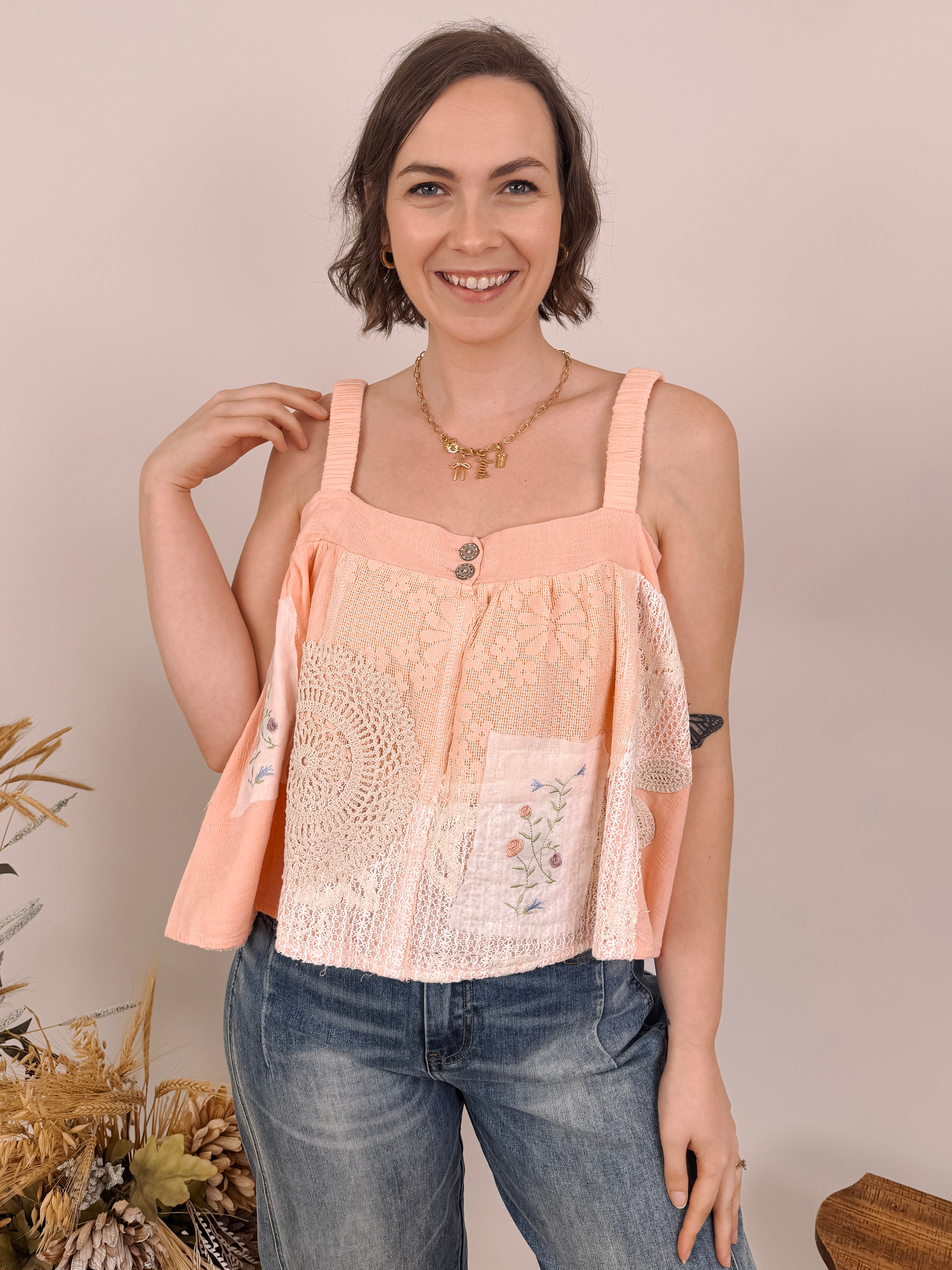 Roam Free Patchwork Detailed Top