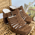 Beautiful minimalist vegan leather basketweave sandal with a fun and funky platform heel. This style is topped off with a fun buckle detail.