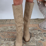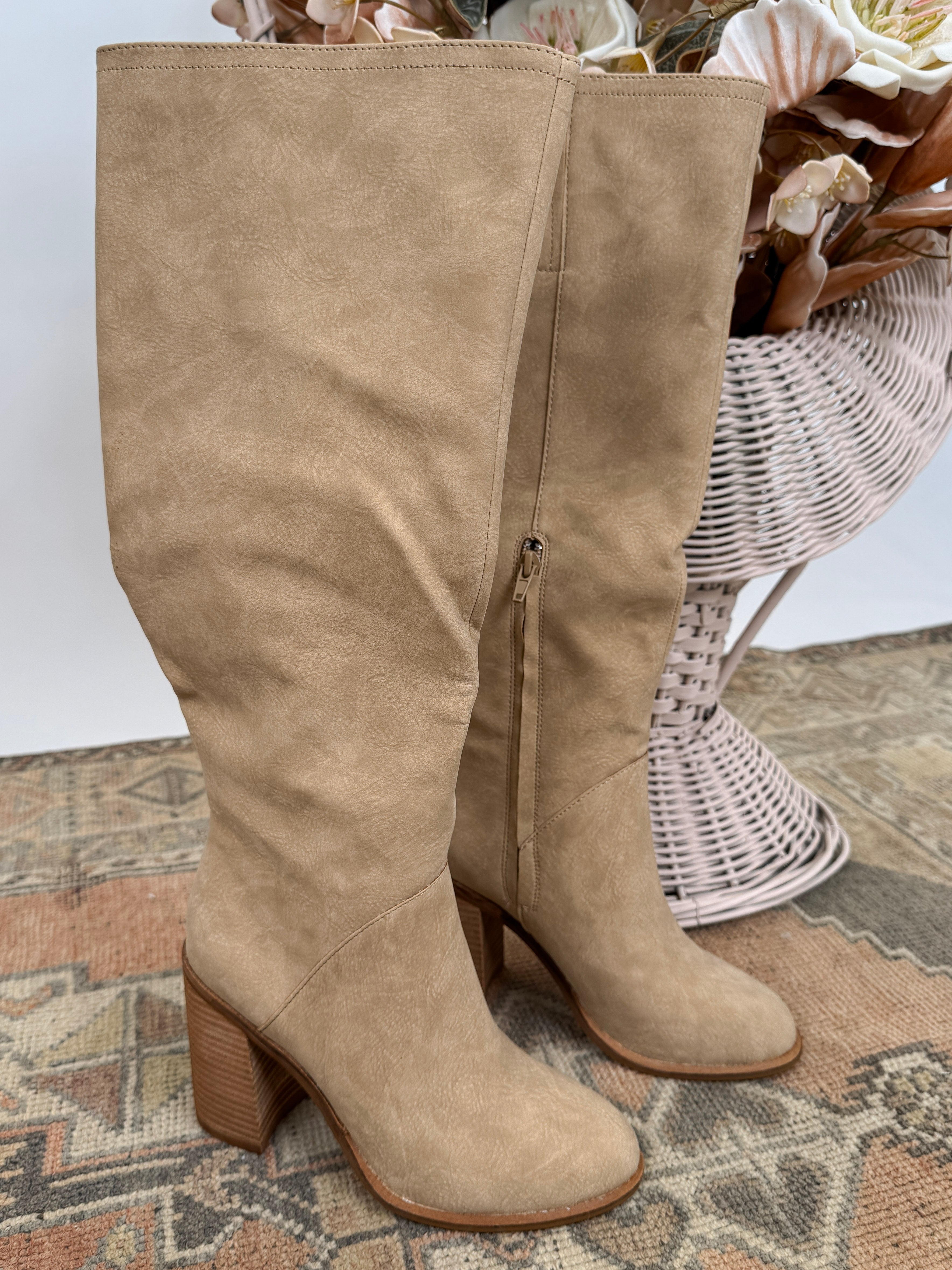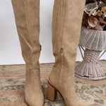 A beautiful tall boot on a stacked heel makes it a versatile staple in any wardrobe.