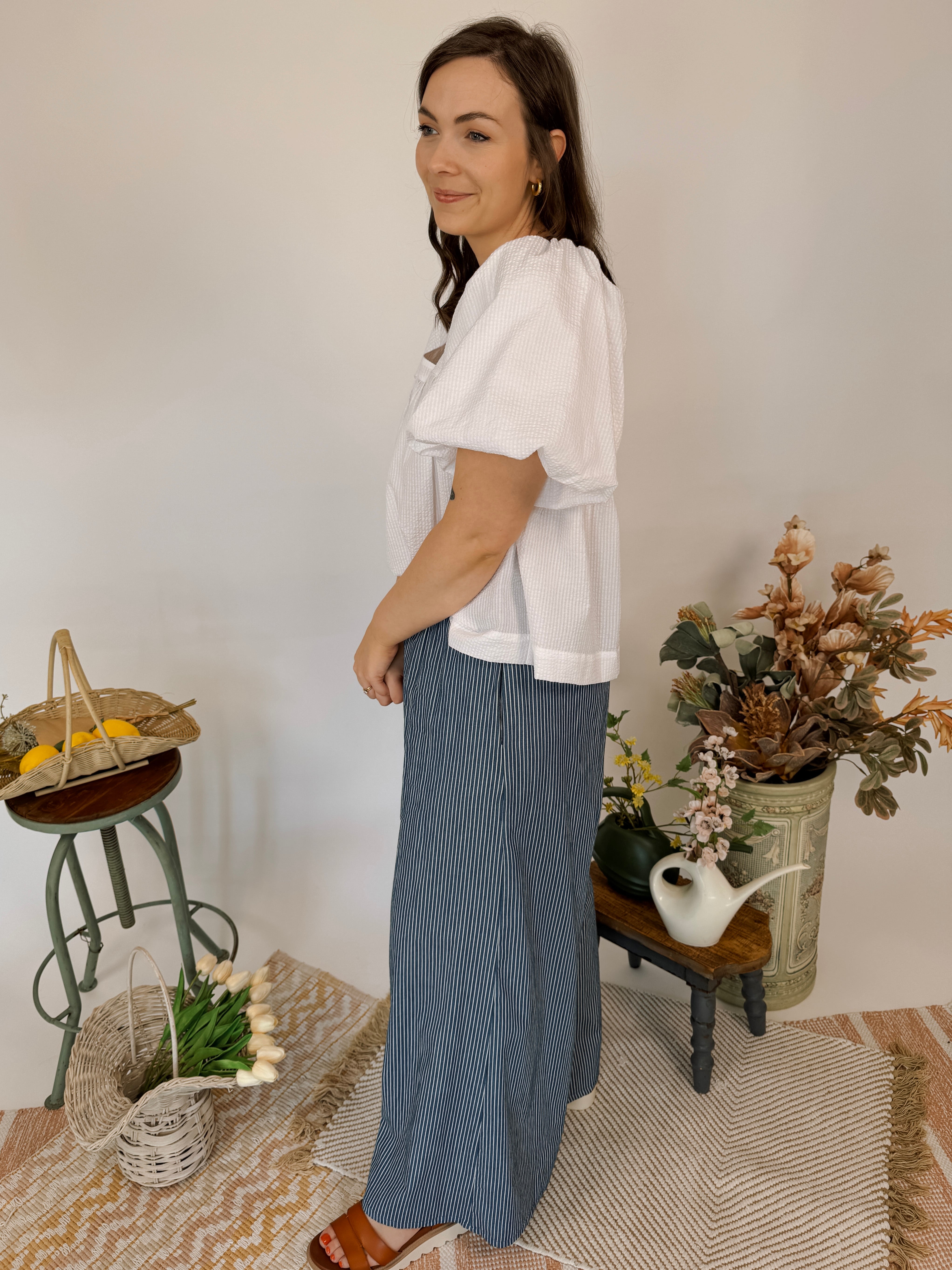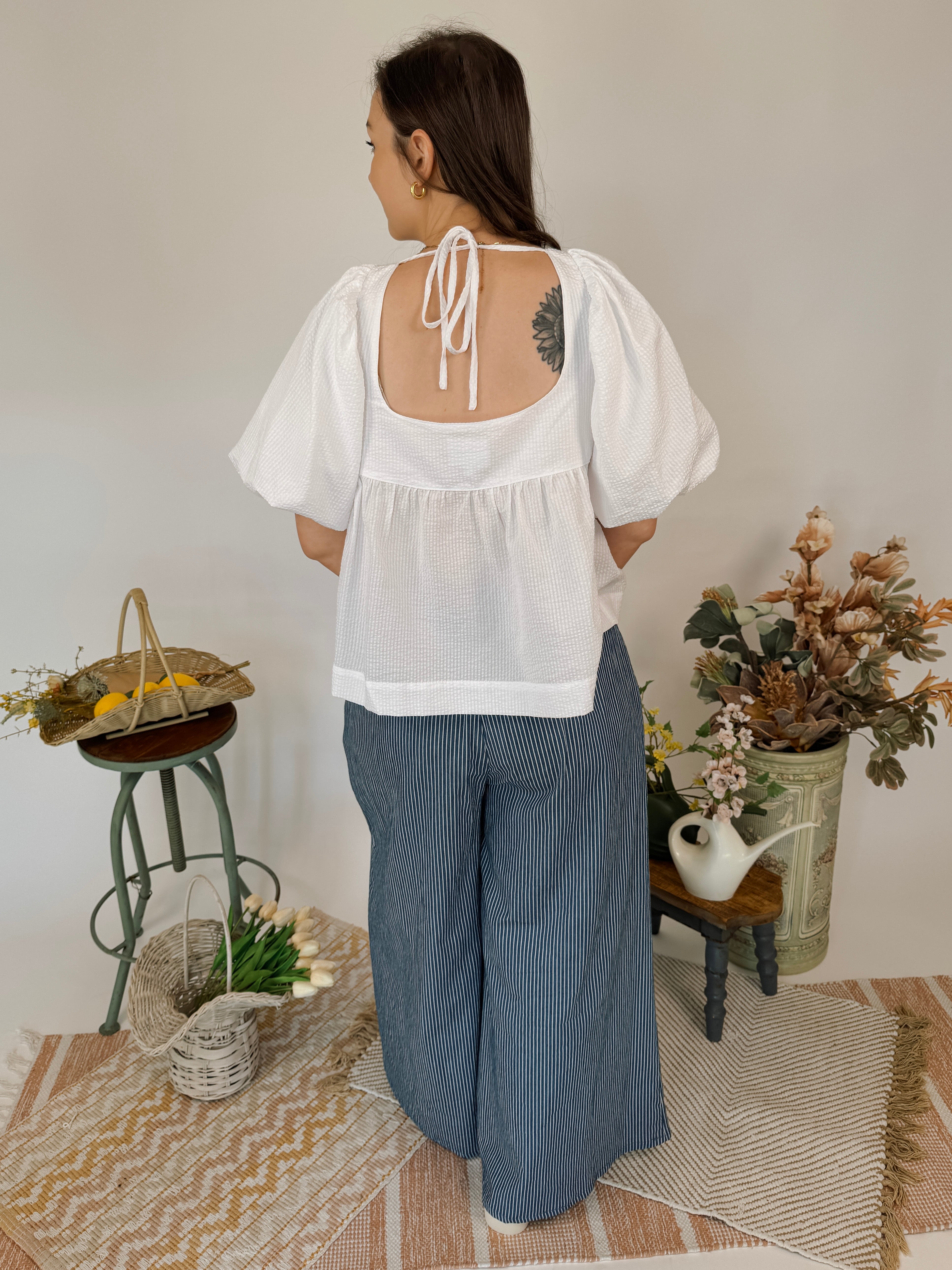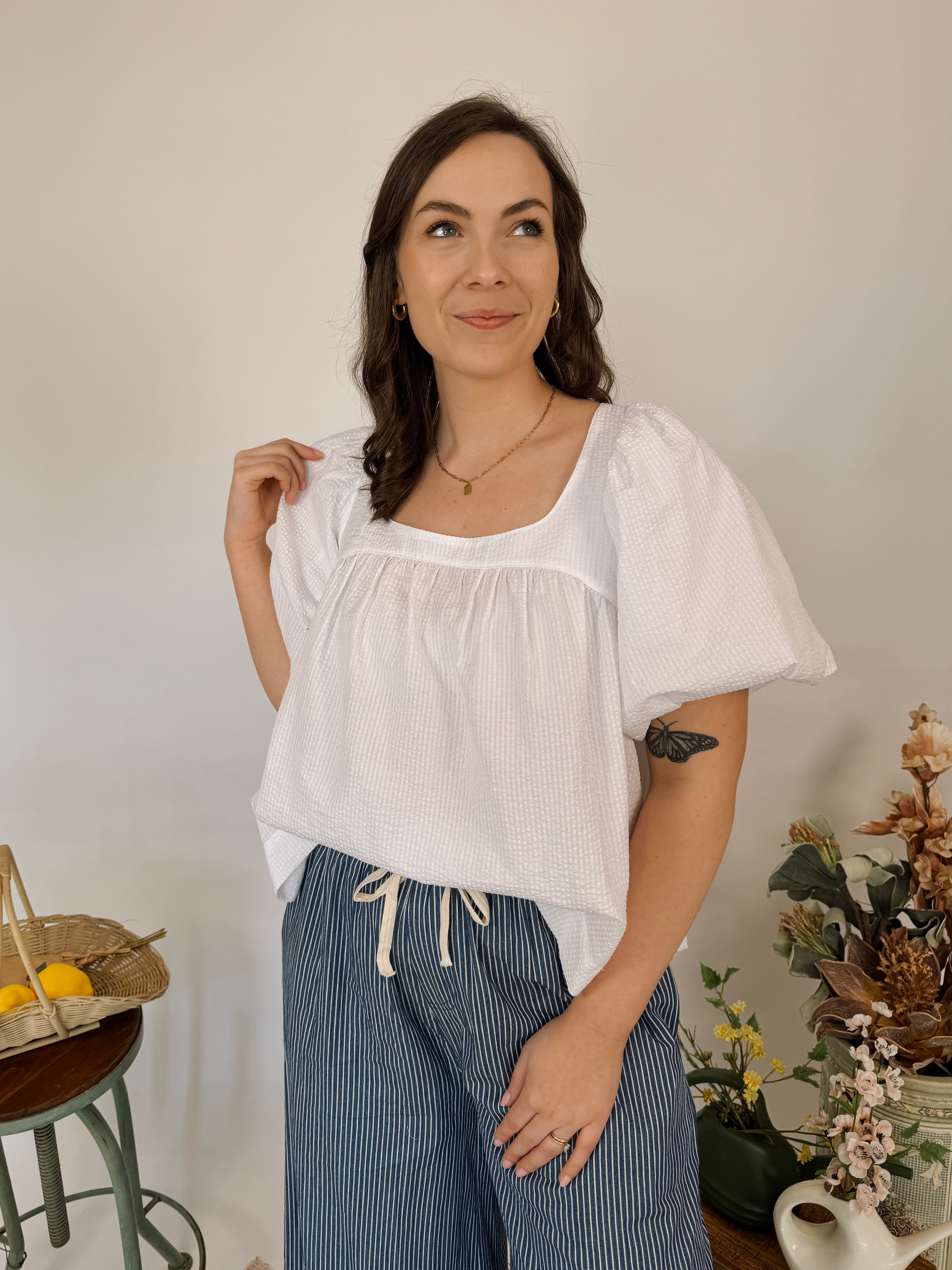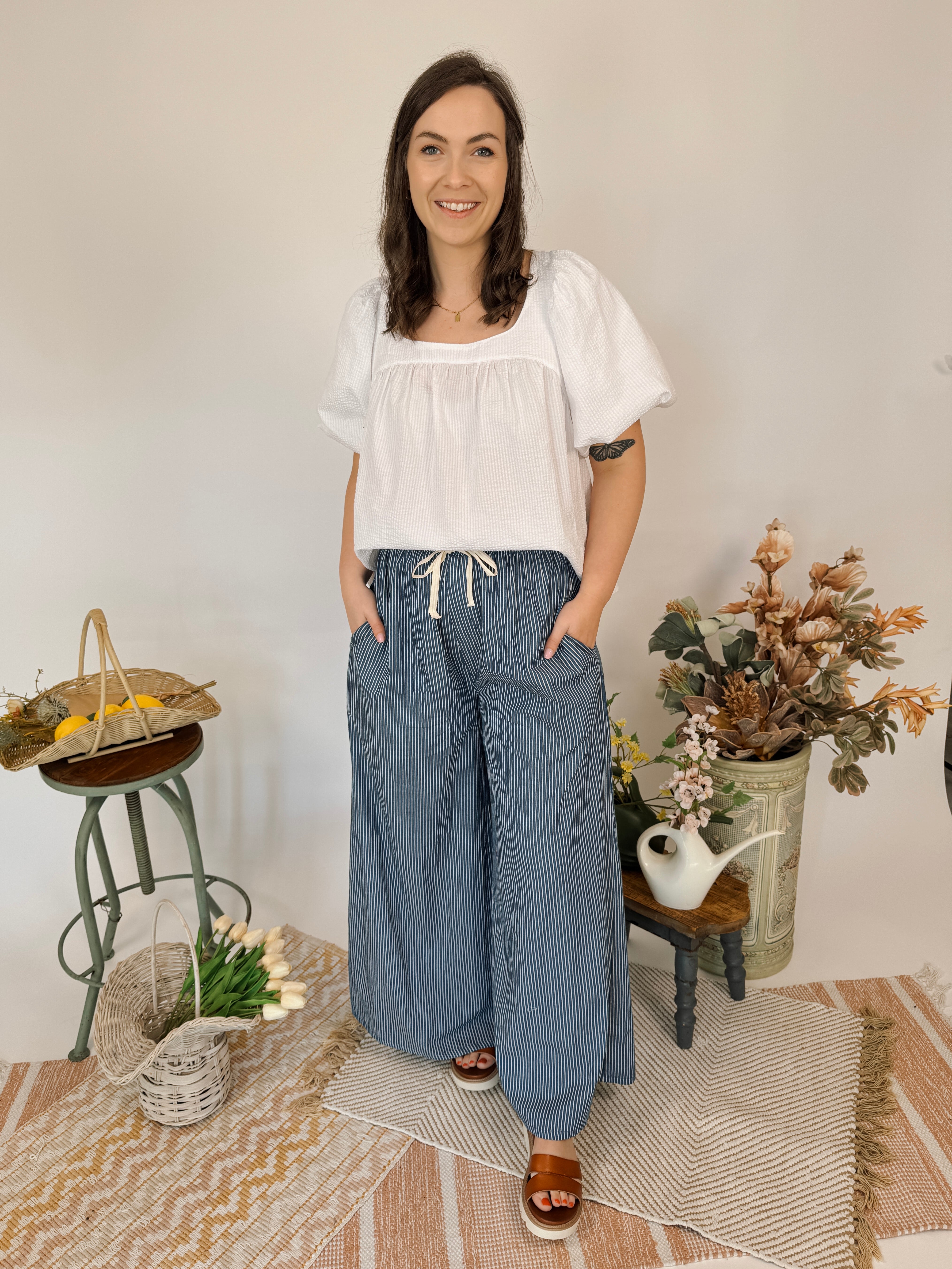 Summertime Bliss awaits you in this blouse! We've paired the Miranda Drawstring Pants with it for a fun beach-look, but could see you strolling around town in it with a pair of denim shorts and sandals. This is sure to be the top you reach for over and over again throughout the Summer!