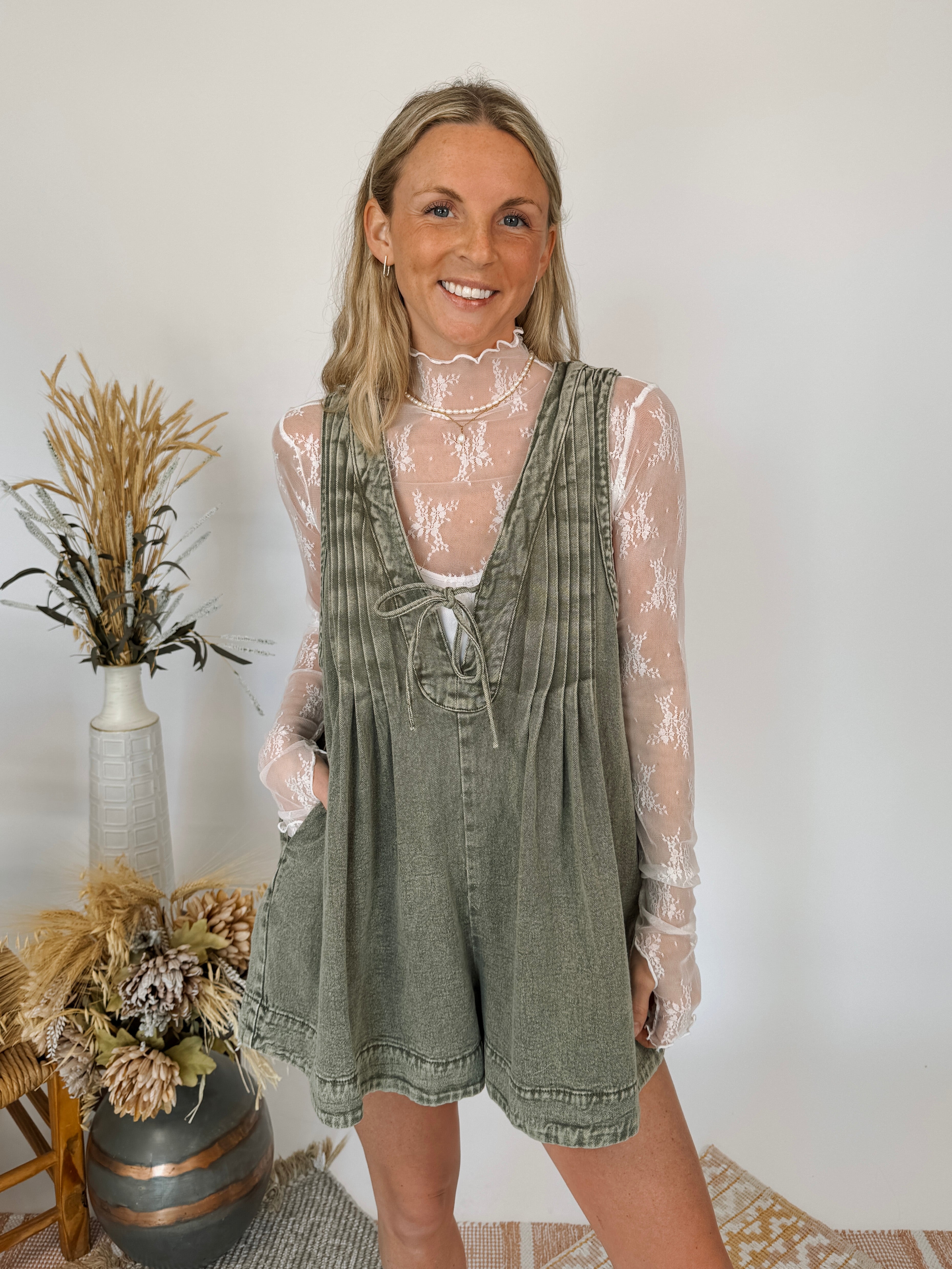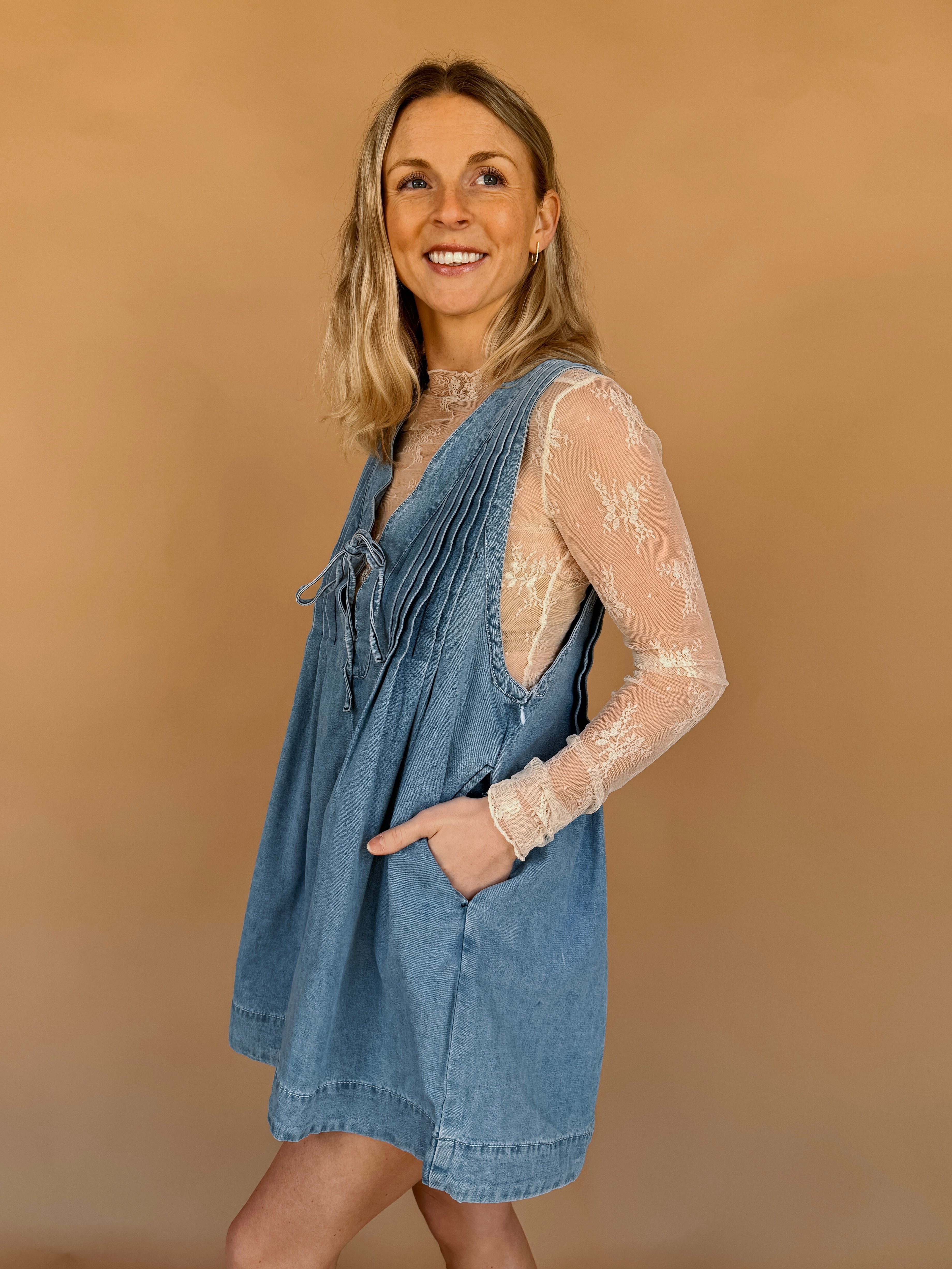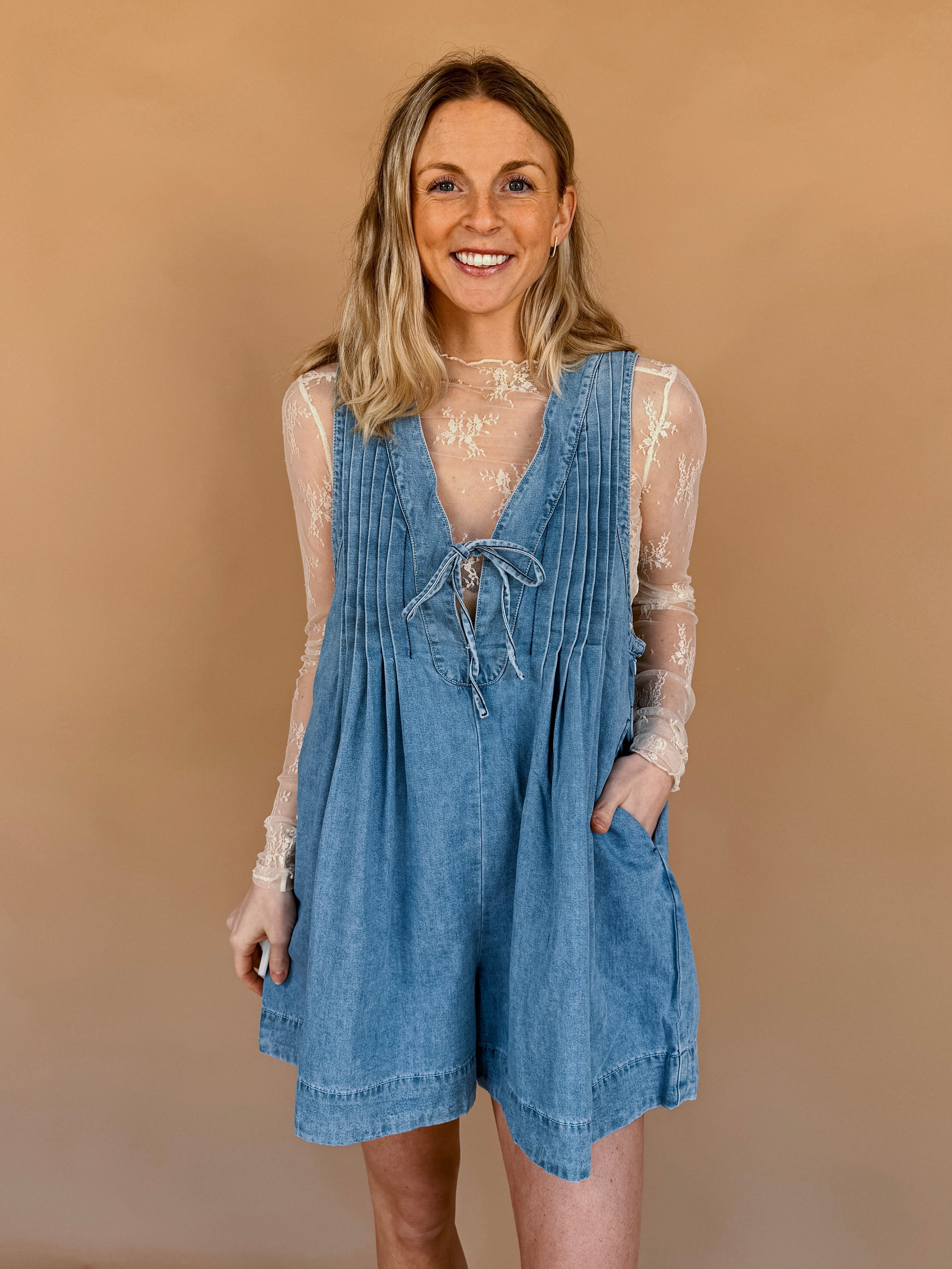 This romper is a staff favorite & a must have in your wardrobe!! It is made from soft, medium-weight denim with a relaxed fit, perfect for layering like we have pictured. The legs of the shorts are wide and gently flared, almost like a mini-skirt but with the practicality of shorts! The Victoria is a flowy, denim dream romper that is great for all occasions!