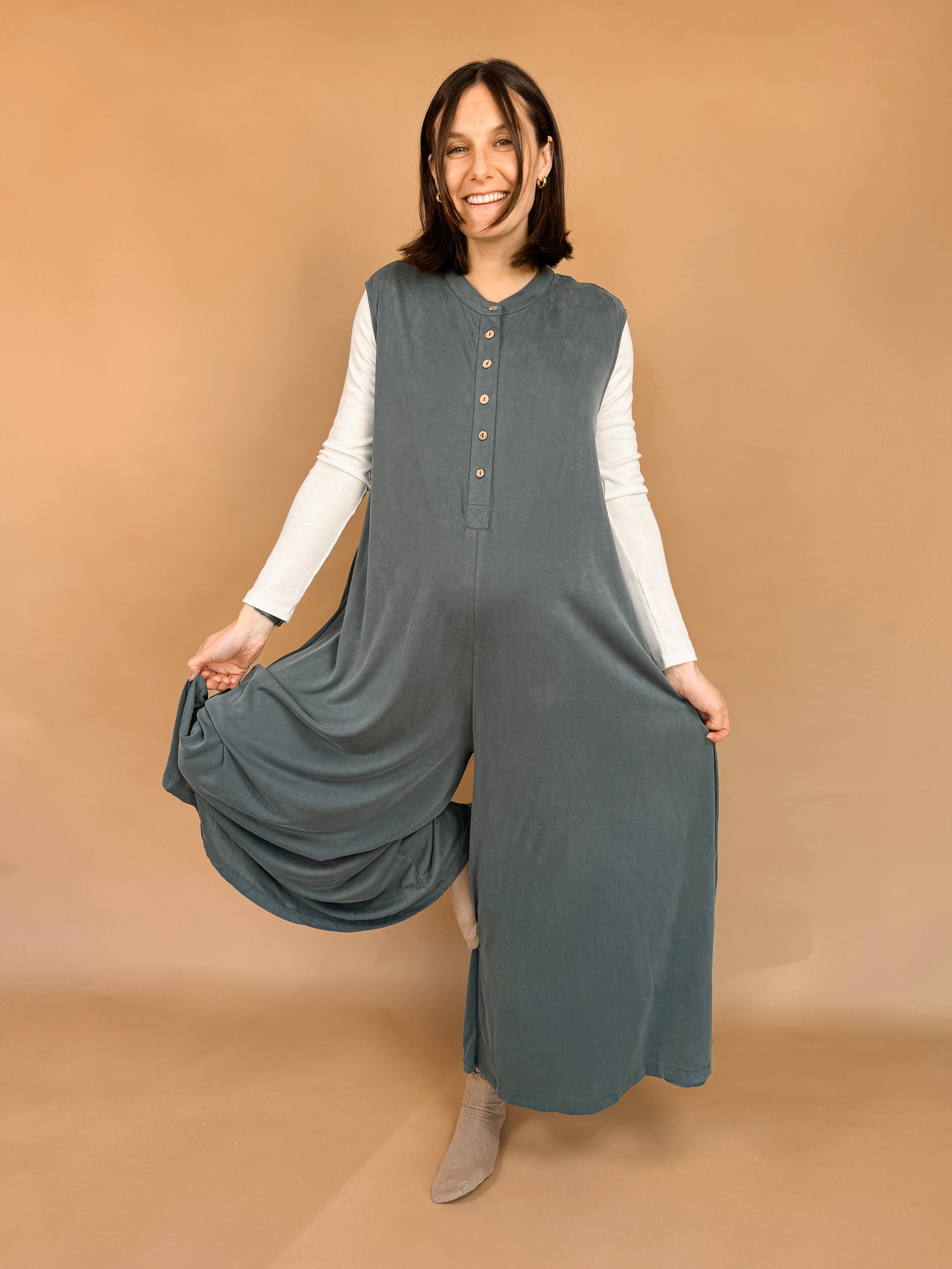 The Whitney Jumpsuit was made for everyday wear!! The design is loose and relaxed, with a wide-leg silhouette that flows fluidly from the waist down, creating a laid-back and breezy feel. The wide legs offer plenty of movement and can be paired with sandals, sneakers, or even a chunky heel, depending on the occasion!